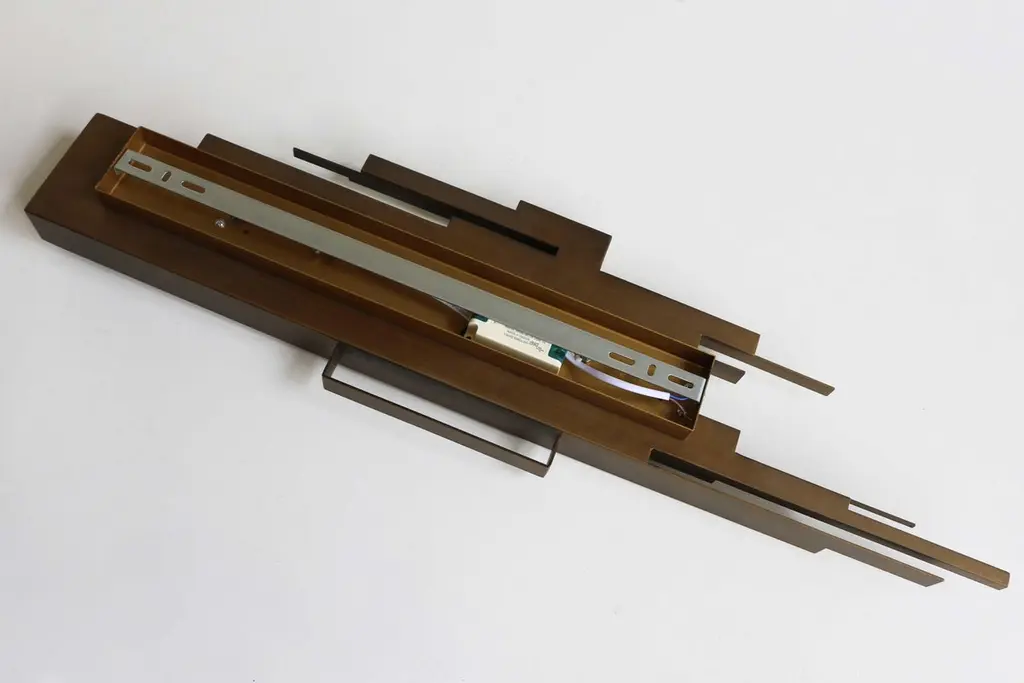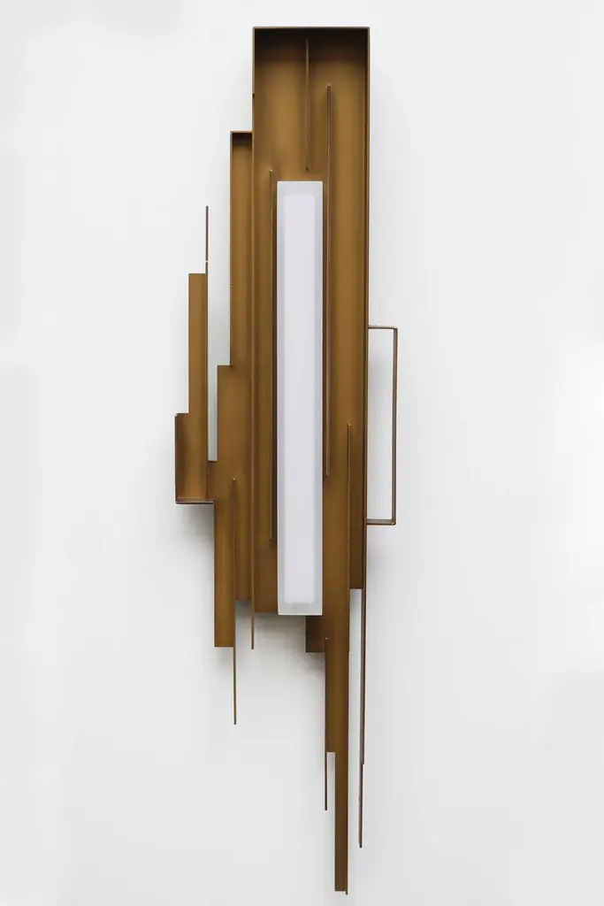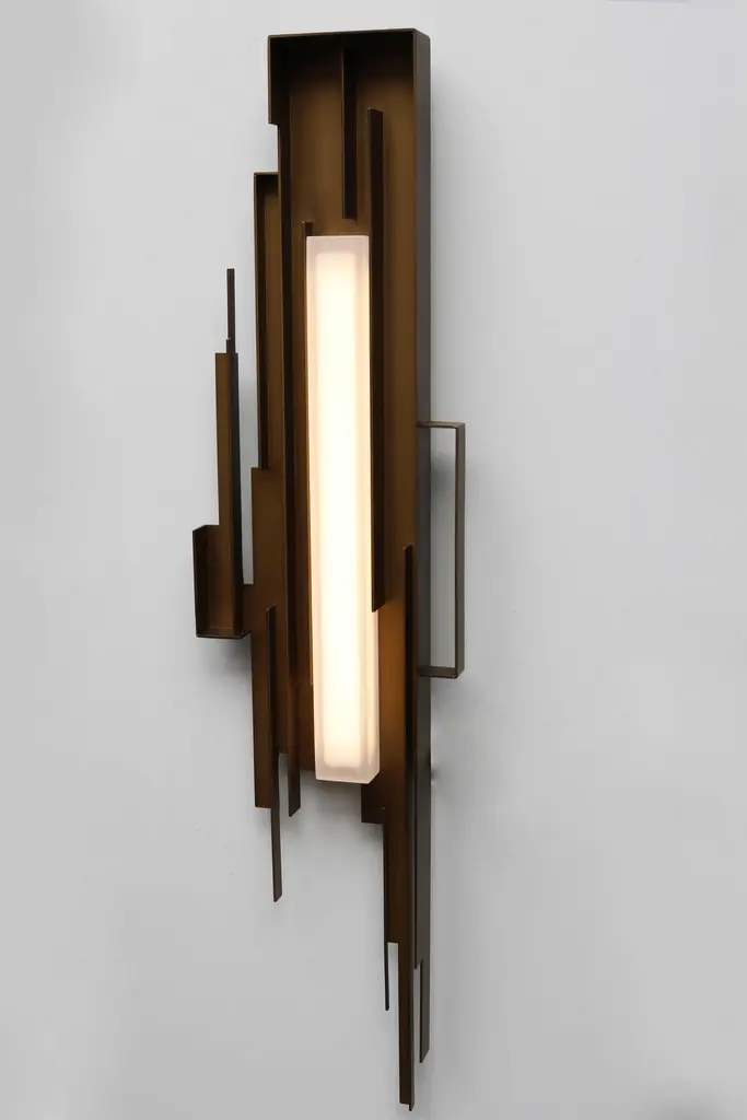 From our own new modern design collection: This gorgeous pair of metal sculpted brutalist styled wall lights / wall sculpture. Inspired by the abstract and unique style of the brutalist movement and made out of patinated iron. These wall lights have the perfect vintage vibe. The frosted acrylic shade looks amazing when turned on with the build in warm led lights providing a warm cozy feeling. The perfect combination between functionality and art. The lights can be easily attached to the wall As vintage design enthousiasts we wanted our modern pieces to blend in perfectly with the vintage midcentury style, in looks and qualityTo create a breathtaking interior combination of the past and future. We offer free worldwide shipping, price per pair.