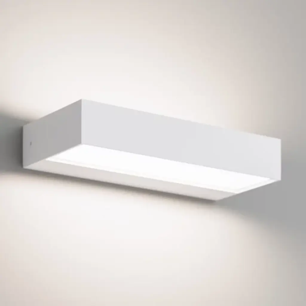 An elemental form breathes life into any space. The IN-OUT LED Wall Sconce by Rotaliana by Luminart is a versatile piece that provides illumination while enhancing its surroundings with a clean geometric accent. Made in Italy, this aluminum fixture forms a rectangular frame containing an LED light source. Glass panels diffuse its glow to provide a glare-free, ambient layer of uplight, downlight, or both. This durable fixture is designed to brighten indoor and outdoor spaces with ease.