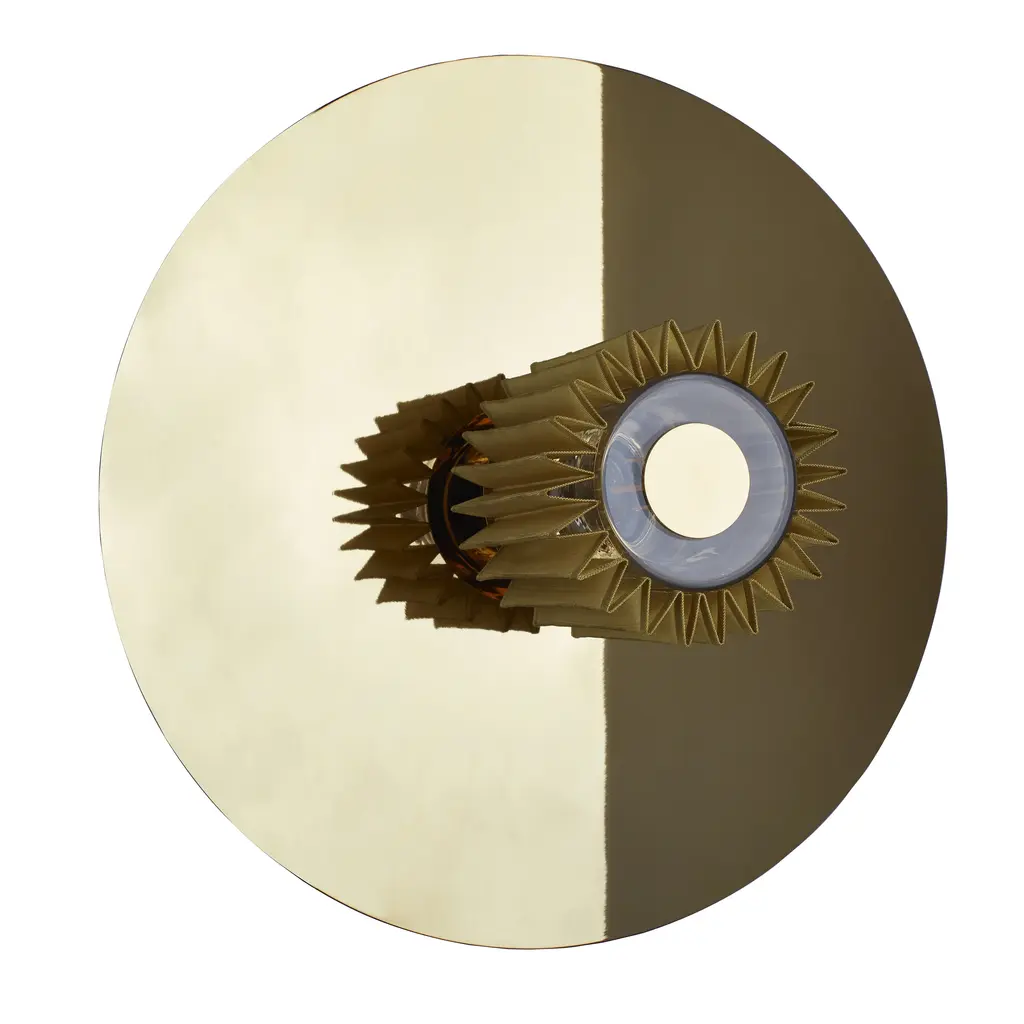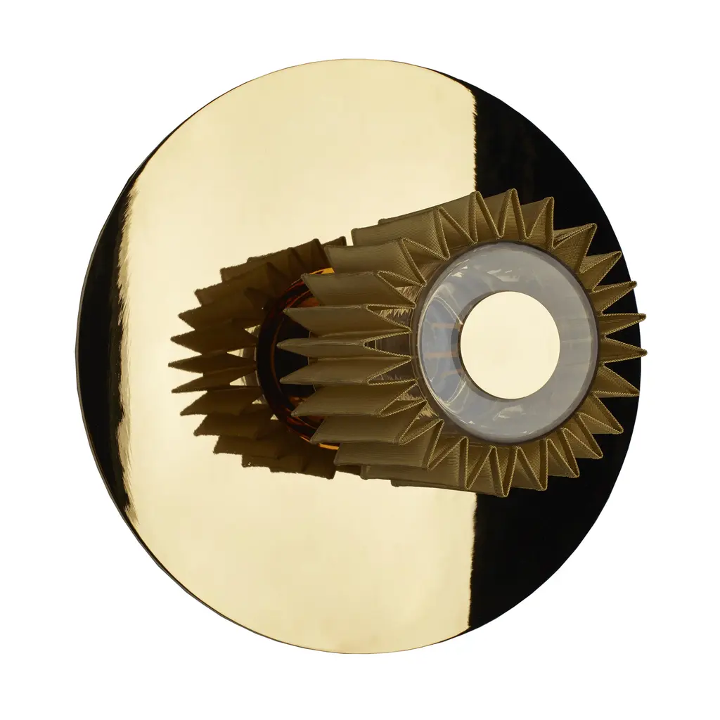 Indulge in the striking warmth of the In The Sun Wall Sconce from DCW editions. With a stellar design by Dominique Perrault & Gaëlle Lauriot-Prévost, this sconce radiates like the sun with a soft ambient light. Its sleek and compact design, anchored by a smooth metal disc mount, is elevated by a pleated mesh shade for a hint of industrial luxe. Highlights
