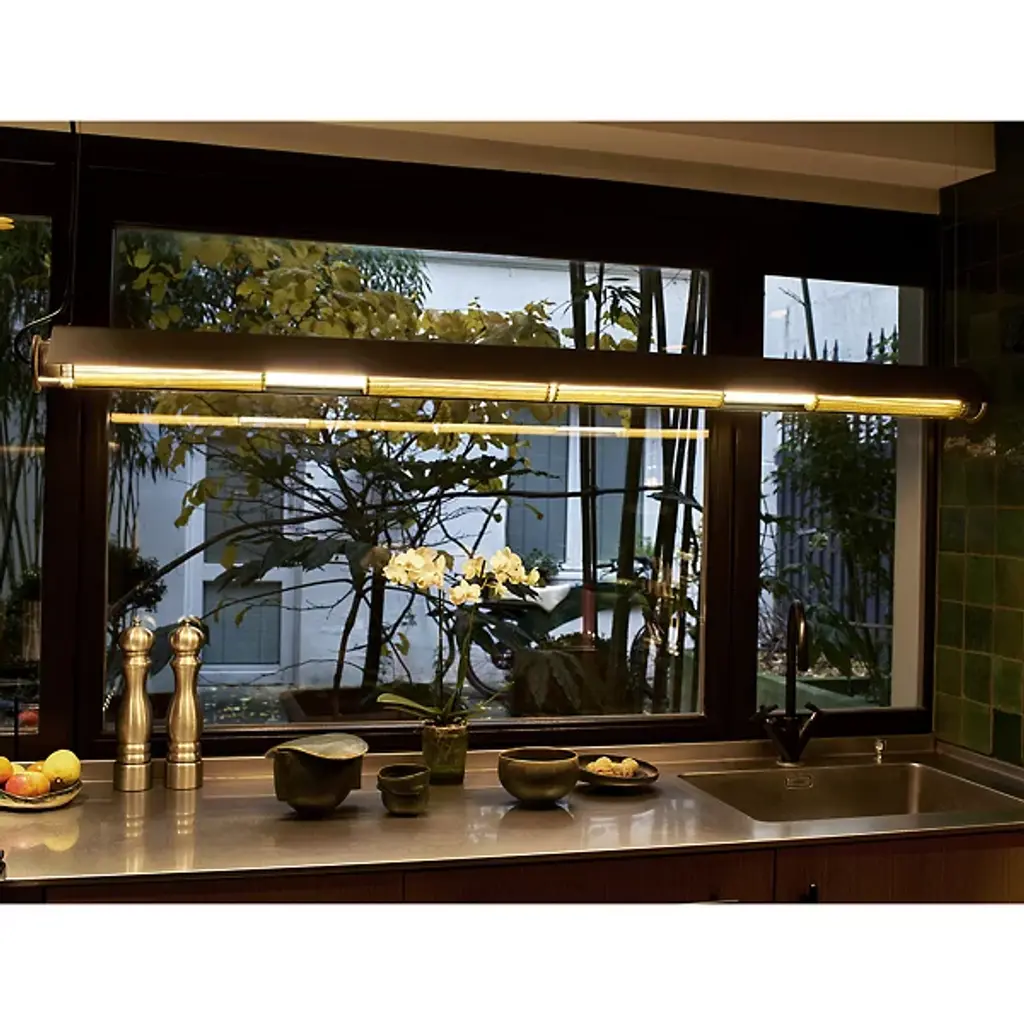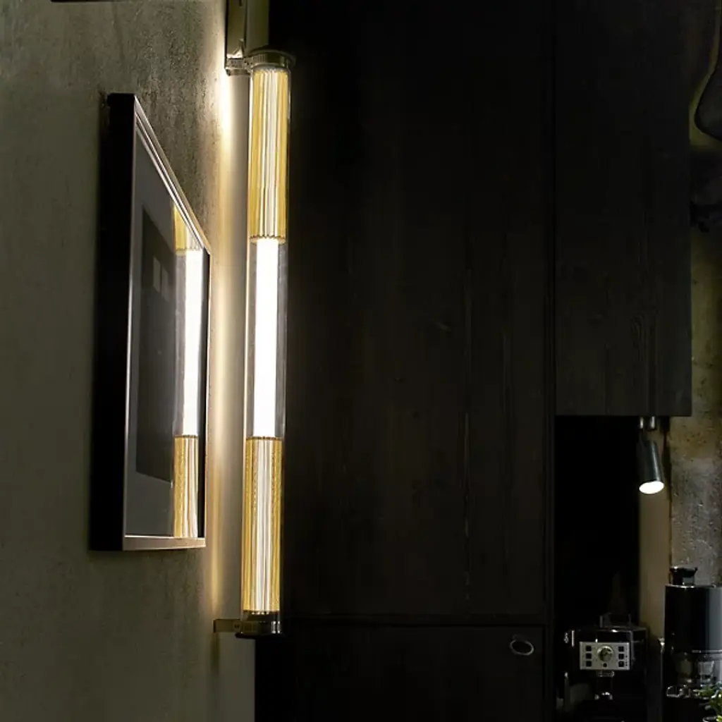 Delightfully decorative and fabulously flexible. The In The Tube 360 LED Wall Sconce by DCW editions is the brainchild of Dominique Perrault and Gaëlle Lauriot-Prévost, and emblematic of their goal to craft strong forms with an original flavor. A timeless design that resembles message tubes from the old mail system of Paris, it uses a robust borosilicate glass tube to contain an integrated LED partially wrapped by a mesh screen, gentling industrial harshness into a wash of warm light. The fixture can be mounted vertically or horizontally, adding flexibility and aesthetic wealth to a simple form.