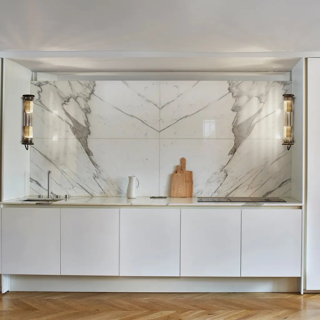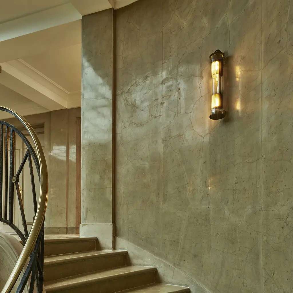 A collection of high-performance LED lights with a futuristic look, In The Tube diffuses a soft, filtered radiance that can be oriented via a movable mesh filter. Architect Dominique Perrault and designer Gaëlle Lauriot?Prévost’s sleek cylinder comes in 4 sizes of varied length and is made of borosilicate glass closed with aluminium stoppers sealed in silicon. And its stainless-steel mountings allow it to be used as a suspension light as well as a wall or ceiling fixture.