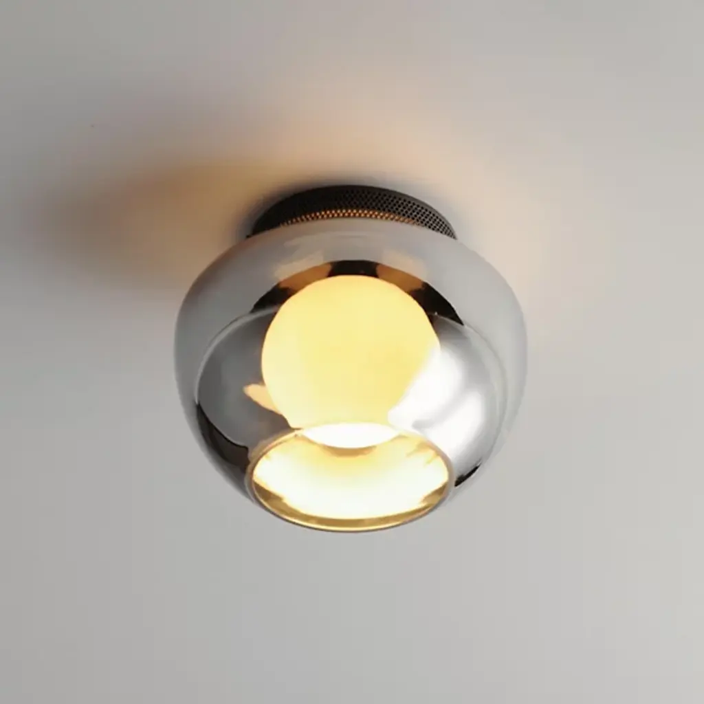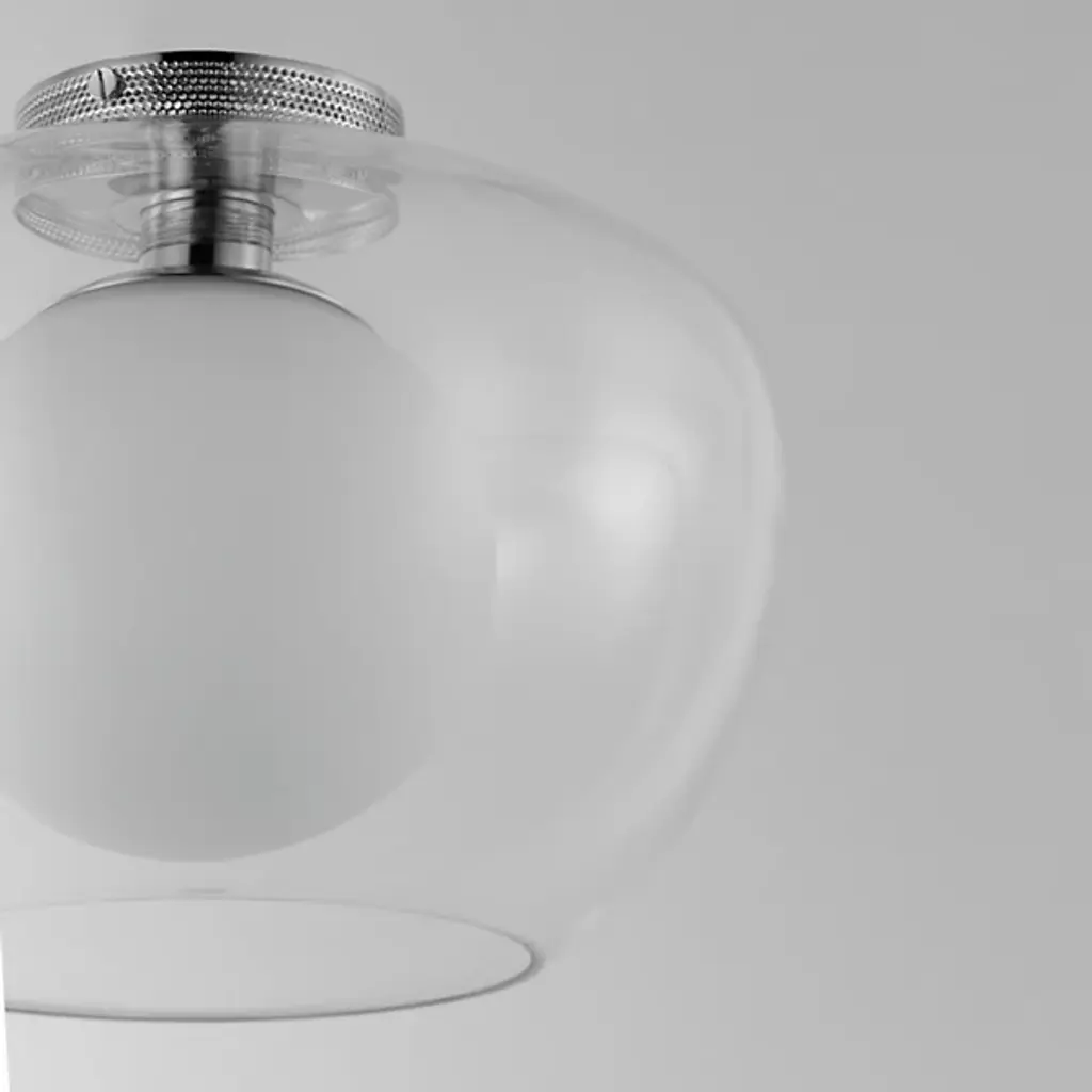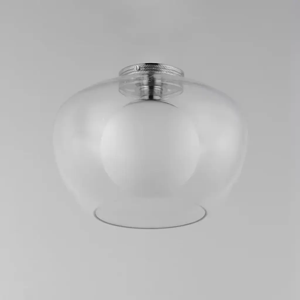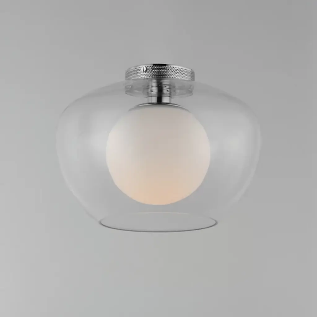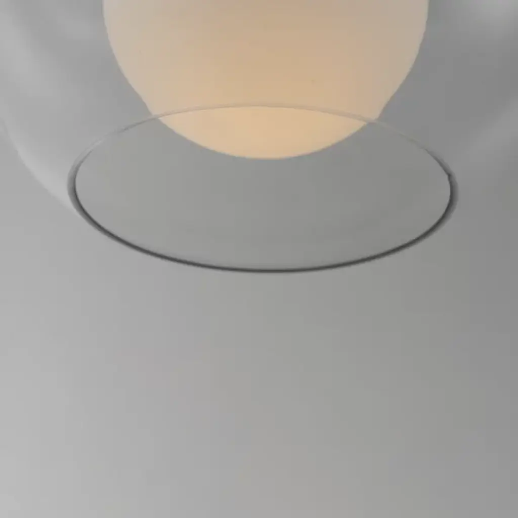 Complexity and intricacy with a touch of retro refinement. The Incognito Flushmount by Studio M reveals a radiant luminosity emanating from illuminated glass spheres discreetly nestled behind opaque shades. Deliberately fashioned with layered designs, these subtly distorted spheres emit a gentle glow, each adorned with gracefully accented metalwork. Versatile and unassuming in design, they offer dual mounting options as either wall sconces or ceiling fixtures, epitomizing a harmonious fusion of retro charm and transitional sophistication.