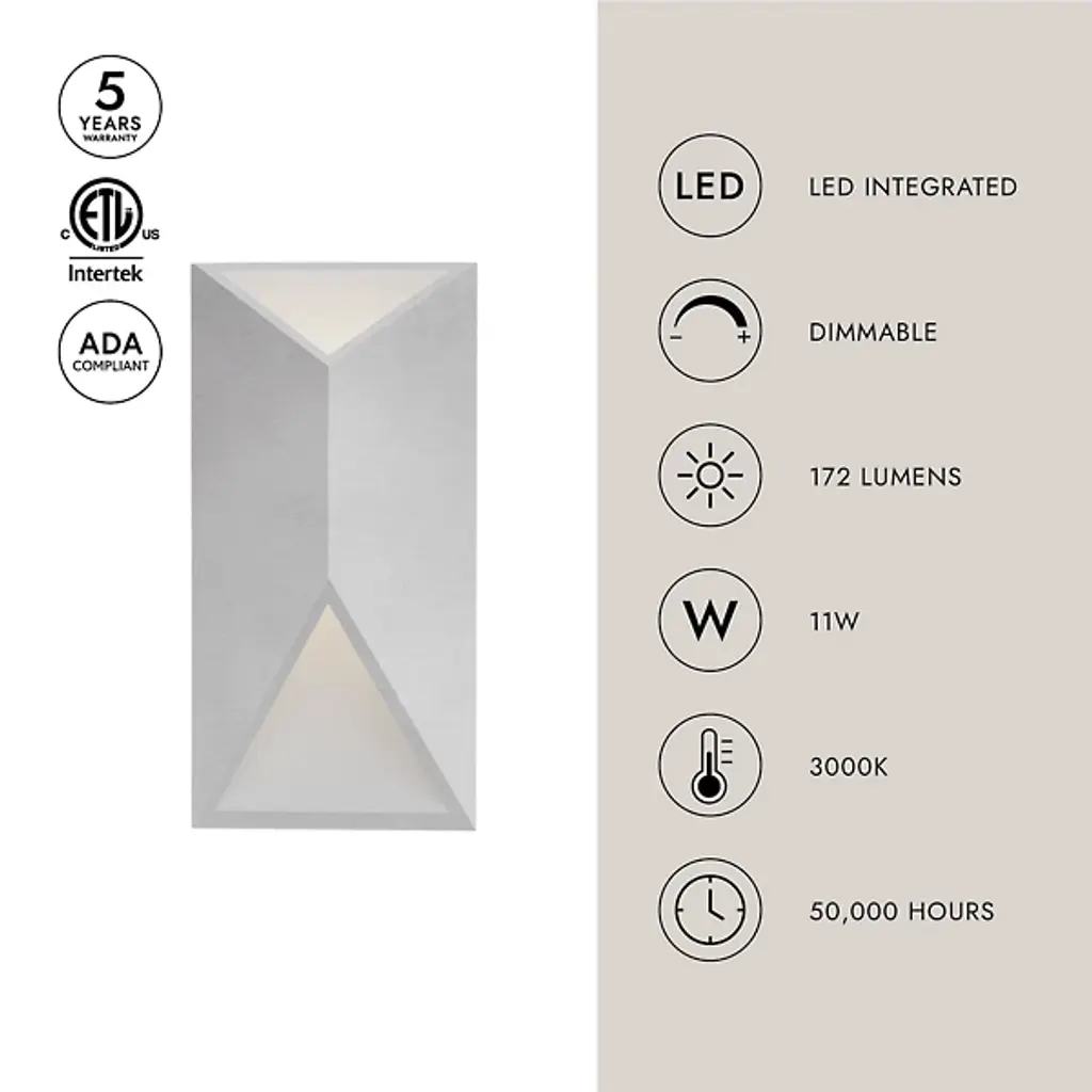 Dynamic and minimalistic. The Indio LED Outdoor Wall Sconce by Kuzco Lighting is a modern and geometrical addition to your home. Machine extruded Aluminum forms an open ended pyramid like shape that rises from a rectangular base, casting both upward and downward LED light through triangular spaces. With a crisp and stunning silhouette, this small and low profile wall sconce adds a fully dimmable layer of light to walkways, entryways, porches and other outdoor lounge spaces.