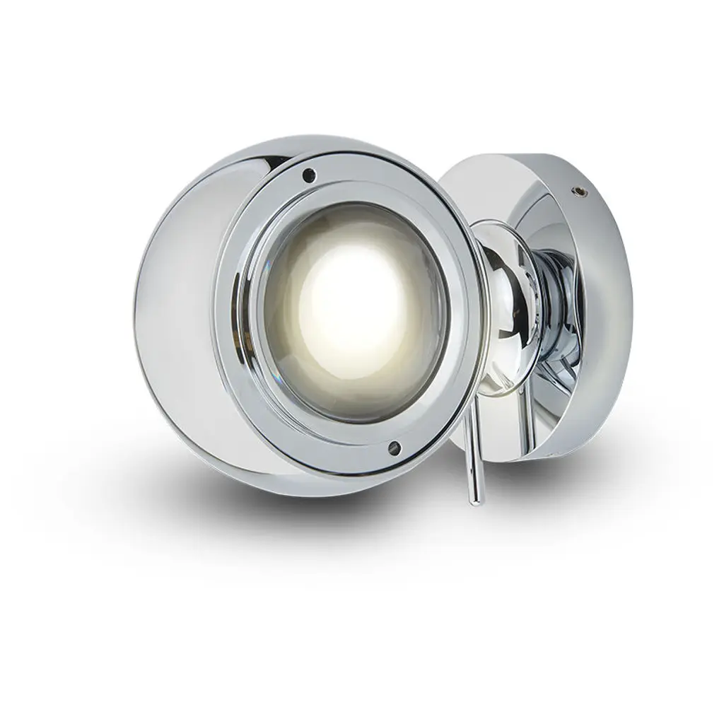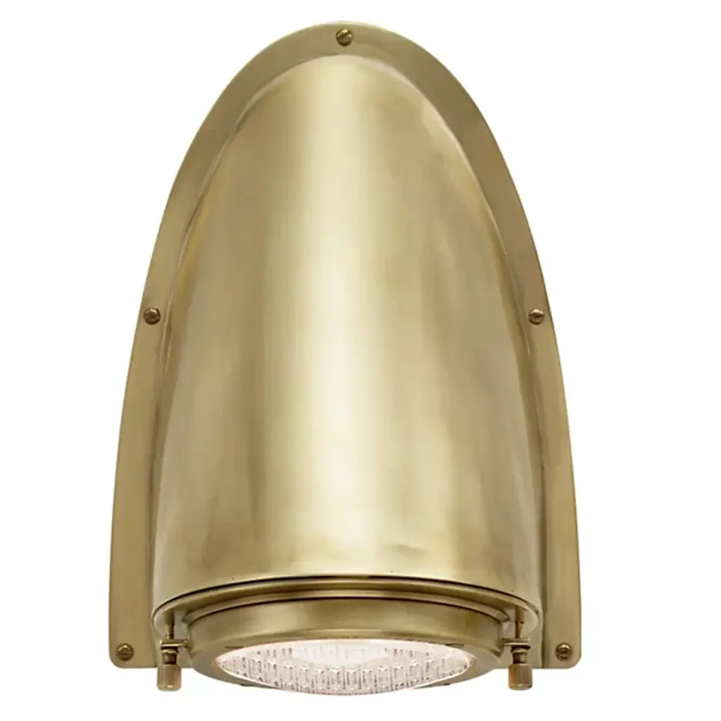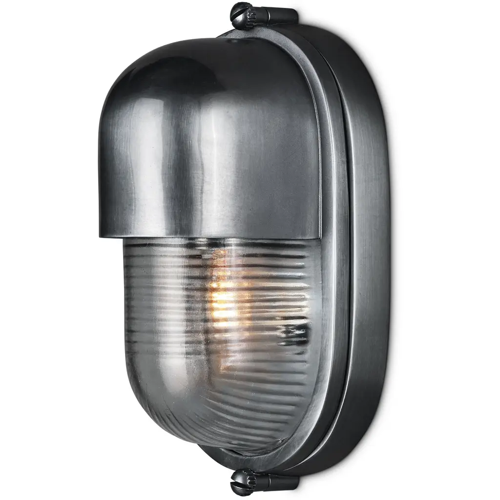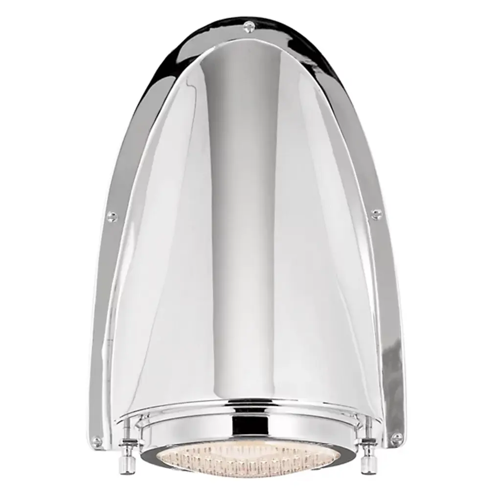 Industrial Chrome Finish (more textured, rugged finish - contact us for more detailed info/images) / Interior (Dry) UseOur R-11 combines nautical and industrial details to create a modern / industrial sconce with a little extra art deco flair. True to our roots, we preserved nautical durability and added extra design. The result is a solid brass UL wet rated round bulkhead sconce that can be used both inside and outside the home.R-11 Additional details include:Solid Brass (10+ Finishes Available)UL Listed, Suitable for Wet Location; Interior / Exterior Residential & Commercial use.Max Wattage: 100w LED; Wall -75w Ceiling -60w Incandescent; Medium Base Sockets (E26) accepts LEDs, Incandescent, CFLs; Standard 110v , DimmableAssembled & UL Listed by our team of dedicated craftsmen & women in Marblehead, MA (USA)Options: On/Off Switch Available; Oval Versions Available (O-5,6,7)Glass: Clear & Frosted GlassFinishes: Standard Finishes: Unlacquered Brass, Industrial Chrome, Polished Chrome ; Custom Finishes: Antique Brass, Antique Copper, Antique Nickel, Oil Rubbed Bronze, Pewter, Polished Copper, Polished Nickel, Satin Brass, Satin Copper, Satin Nickel, Verdi & Powder CoatMaintenance: Lights will patina and eventually verdigris overtime. Since our lights are solid brass, they will not rust or corrode.Installation: 6” Mounting Surface, attaches to standard box; Wires exit through back of fixture. All Installation Hardware Provided. Alternative Mounting Options available upon request. No assembly requiredInstallations of our Modern Industrial Round Bulkhead Sconce (also known as a half moon or clam shell wall mount) included the Blue Fin Restaurant in Times Square, and private projects in Naperville IL, Bristol RI and East Sound WA.- **What MAKES our Light different than similar looking products: We modify the base so it will attach and cover a standard junction box. All our lights come with hardware so they're easy to install. IF you've been stuck with a similar looking light and have no idea how to mount it, look no further than our nautical lighting solutions. We promise our lights will be easy to install and will hardwire though the back of the fixture directly into the j-box. Alternative mounting options are available upon request.**Shiplights specializes in nautical inspired Interior / Exterior UL Listed lighting for Residential & Commercial use. Our durable solid brass lighting is typically available in over ten finishes ranging from unlacquered brass to chrome to satin nickel, oil rubbed bronze, powder coat and more. Our fixtures can be used in all locations inside and outside the home. Their solid brass construction makes them ideal for use in humid and seaside locations. Our lights are all assembled & UL Listed by our team of dedicated craftsmen & women in Marblehead, MA (USA).