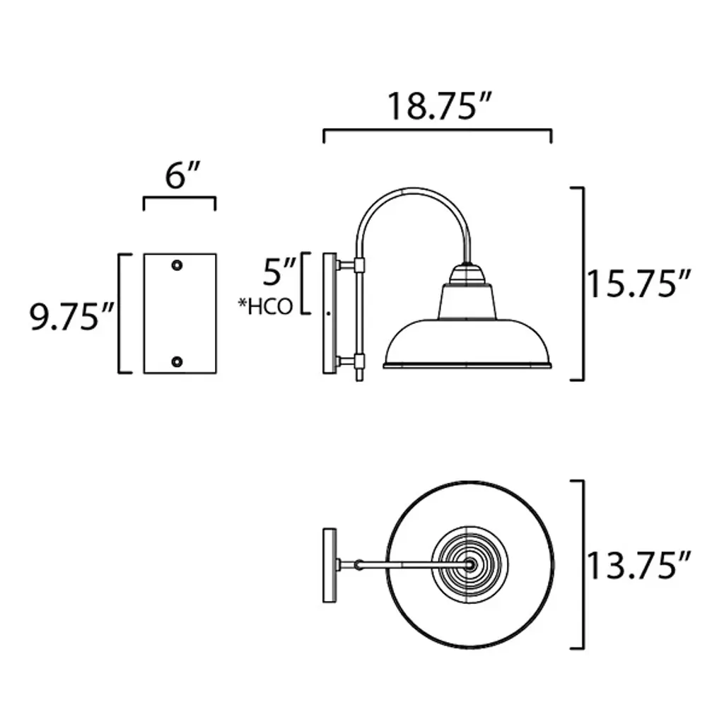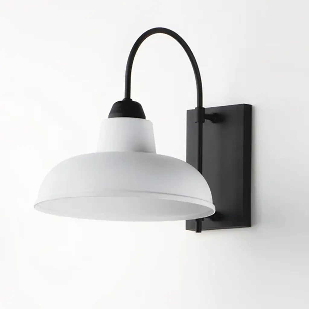 A classic style with a modern update. The Industrial Outdoor Wall Sconce by Maxim Lighting offers a clean and simple outdoor lighting solution while evoking the charm of classic RLM silhouettes. An understated rectangular backplate holds a slender, curving arm. A circular shade covers a single bulb and channels its warm light downward in an even glow. Designed to withstand extreme environments, this durable fixture is perfect for completing a home’s modern exterior.