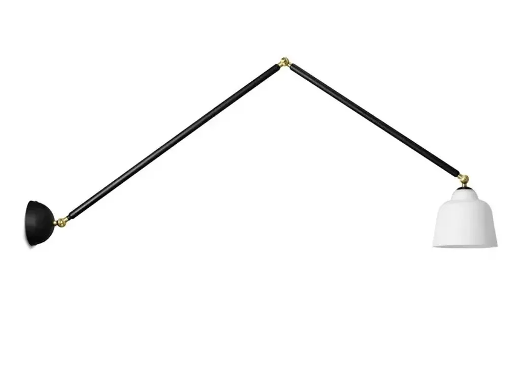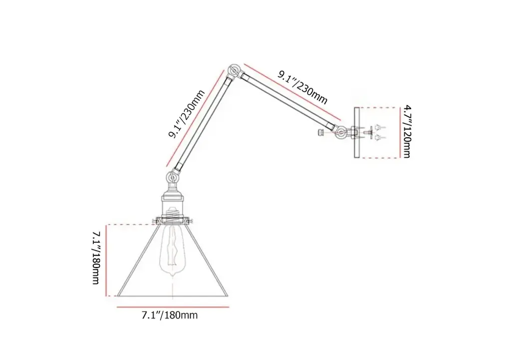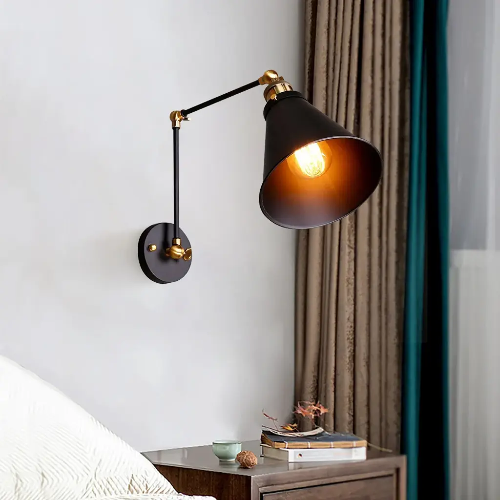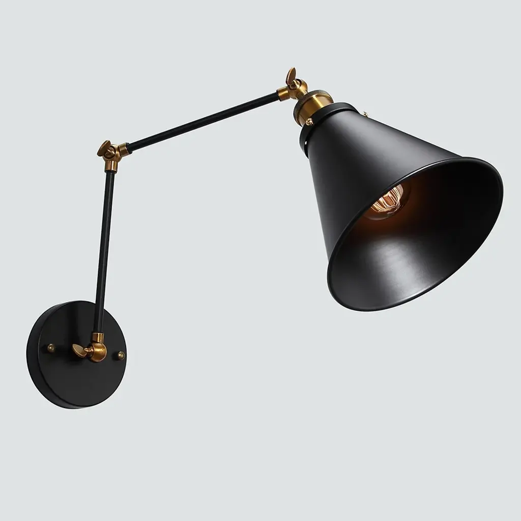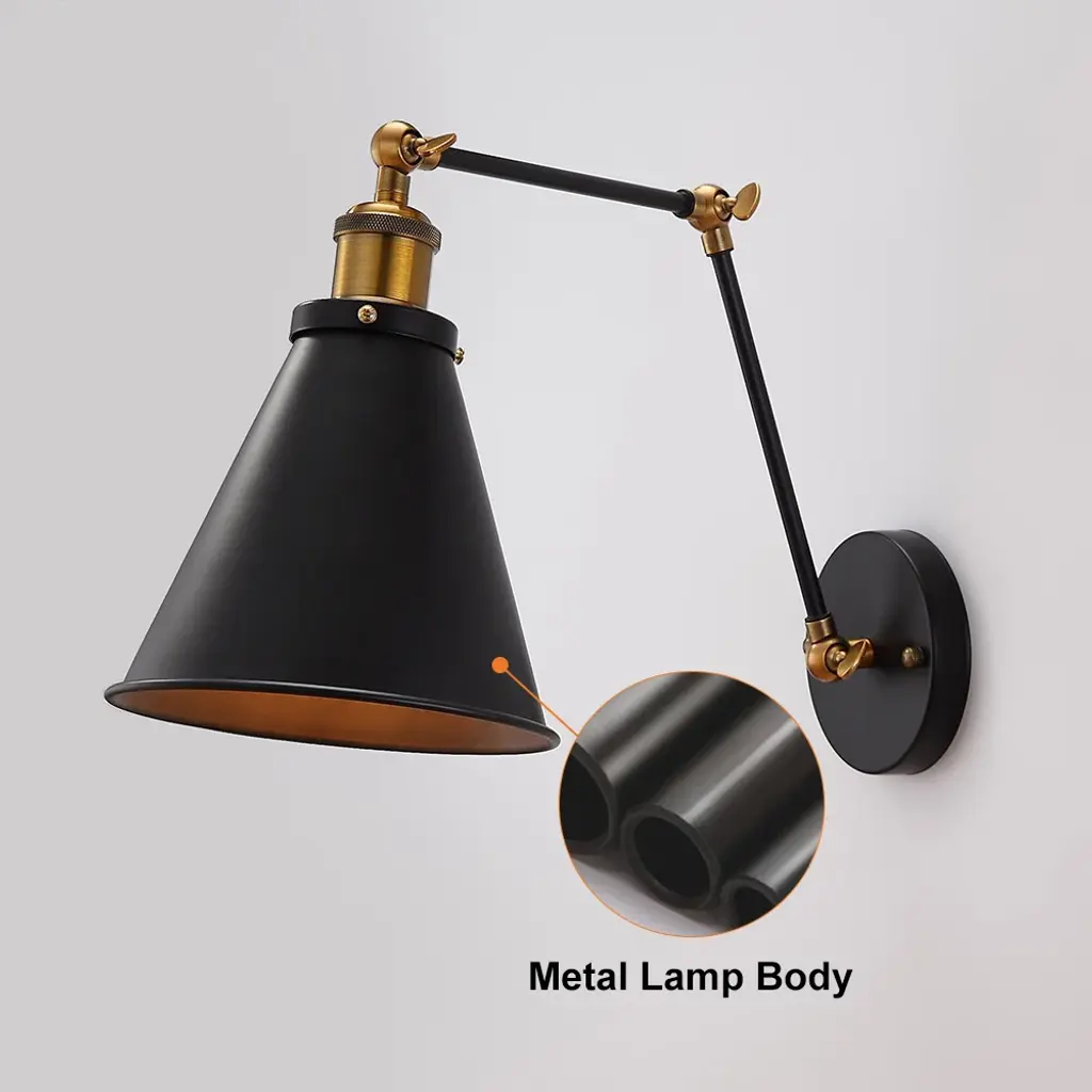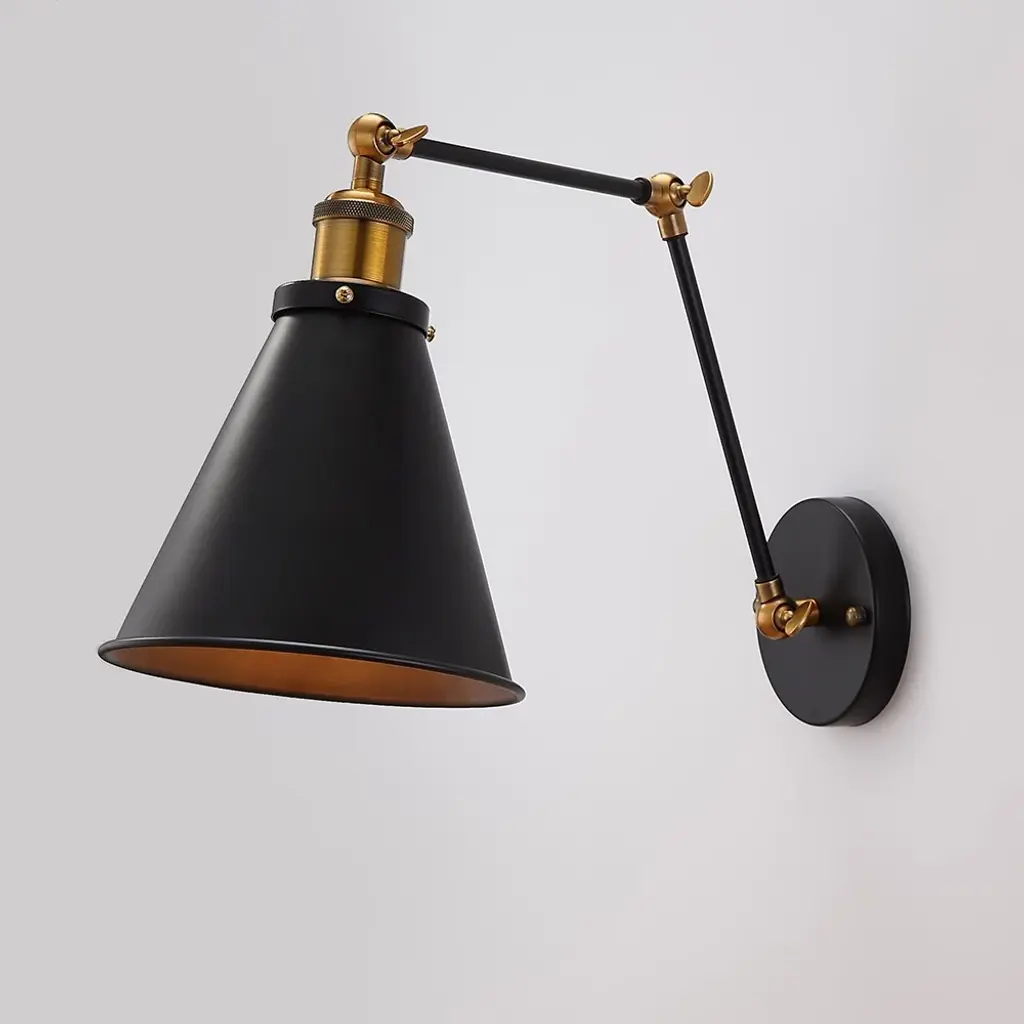 Carrying a touch of vintage flair, this industrial style inspired wall lamp casts a warm glow over any space from your bedside to home office. Handsome and functional, it features two swing arms that can be adjusted with up and down movements, allowing you to direct the light wherever you need it. With an understated black finish and accented with a splash of brass, this indoor sconce offers a striking industrial look. This cool design will be your right lighting solution!