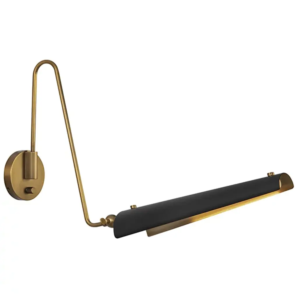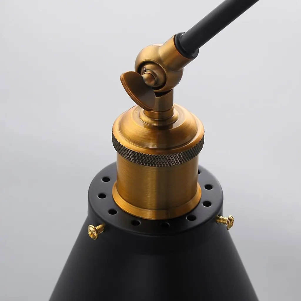 Industrial Retro Double Swing Arm 1-Light Wall Sconce In Black & Brass