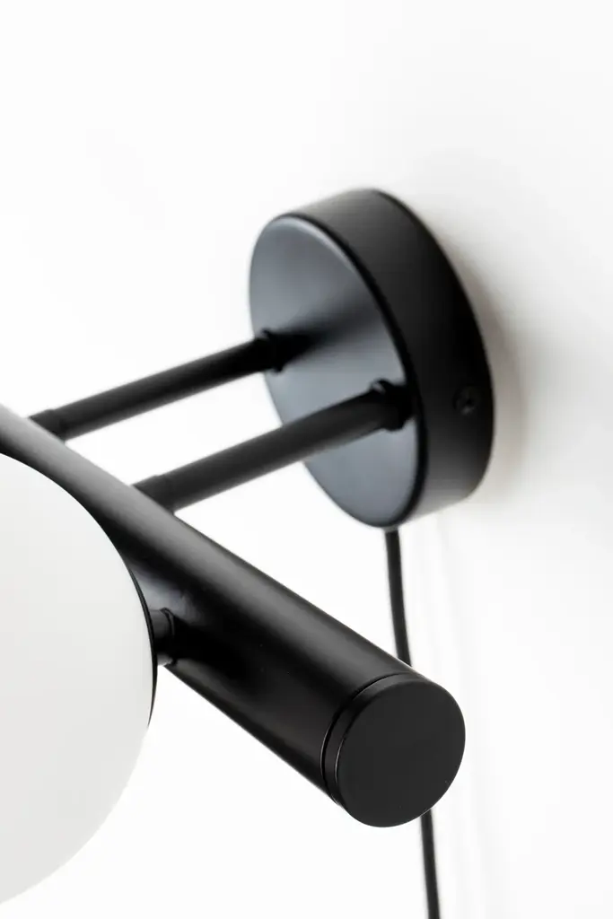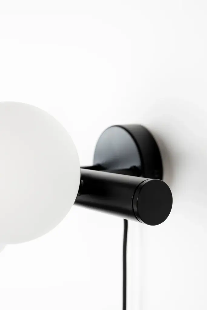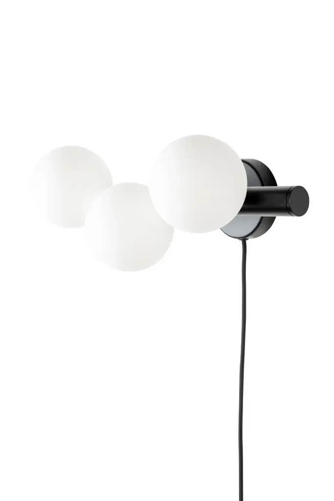 Monica wall lamp by DF is not only an efficient lighting solution but also a stylish decor piece for any room. This innovative wall lamp features three opal glass orbs spiraled into a black metal rod. A simple yet trendy addition to a contemporary space.