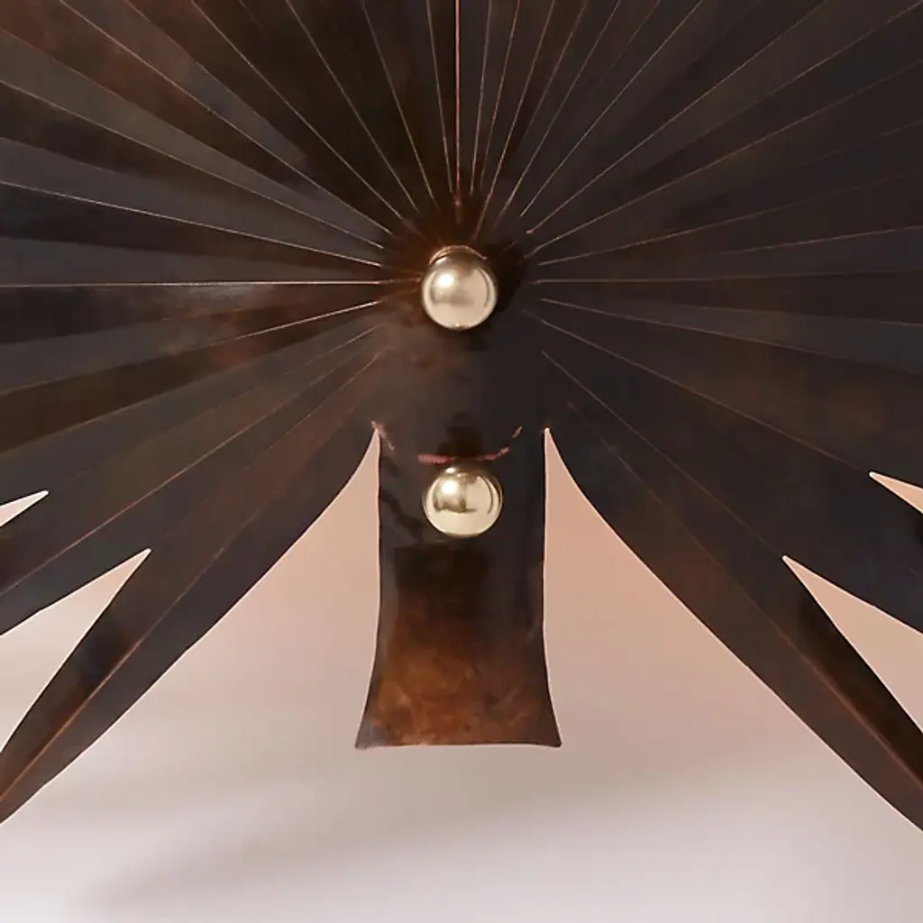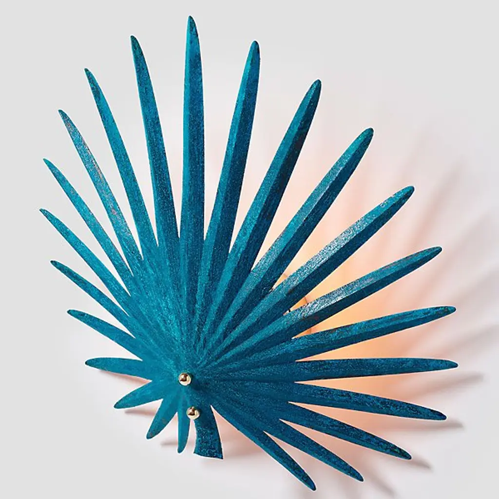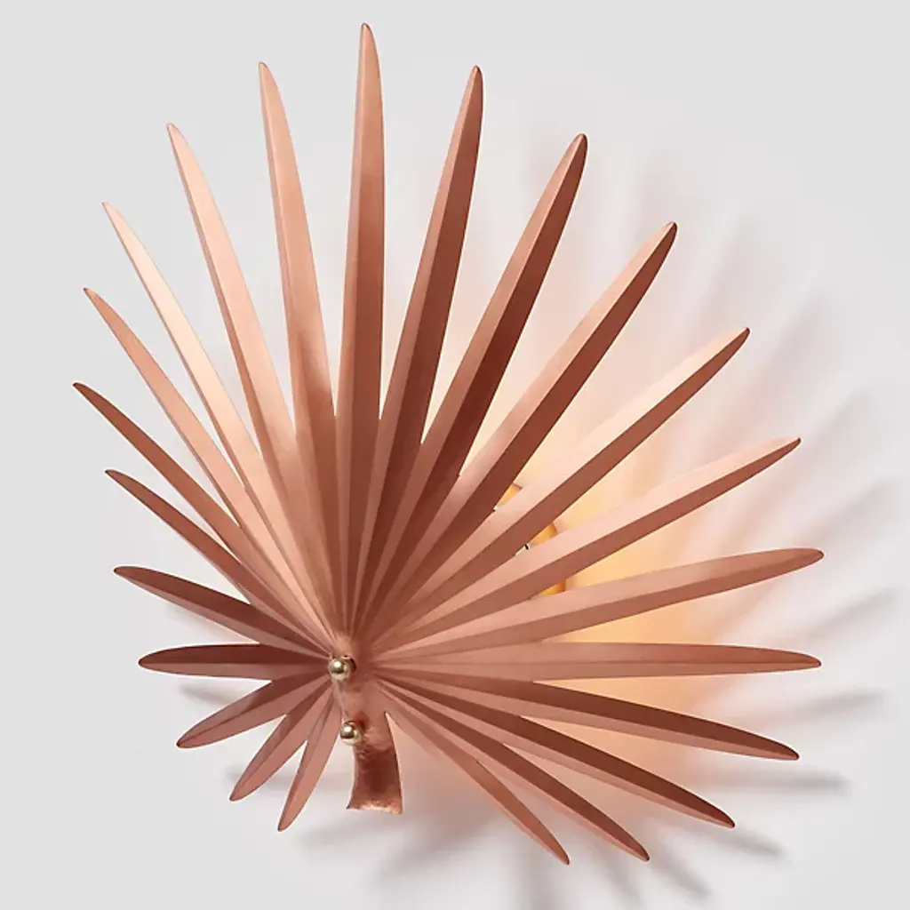 Drawing its inspiration from a memorable hike in the Yucatán forest, the Inez Wall Sconces from Rosie Li Studio add a natural note to wall spaces. Fashioned from hand-pleated copper in the shape of a stylized fan palm leaf, it contrasts richly-textured finishes with a smooth brass understructure. The palm leaf shape spreads dramatically across the wall around it, drawing on Li’s design background to transform the space around it with an arresting blend of ambiance and natural shadows.