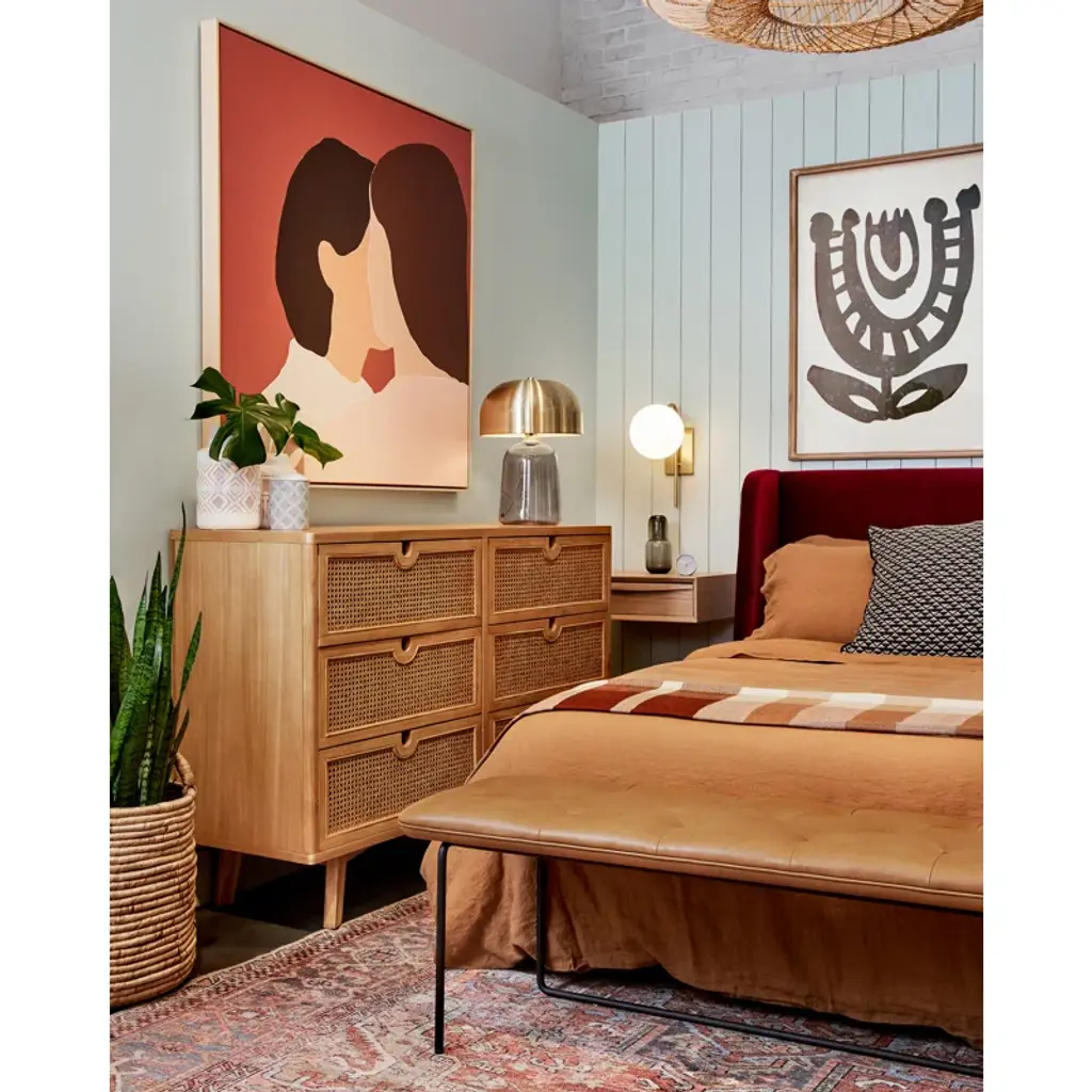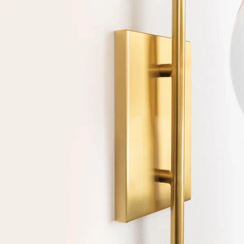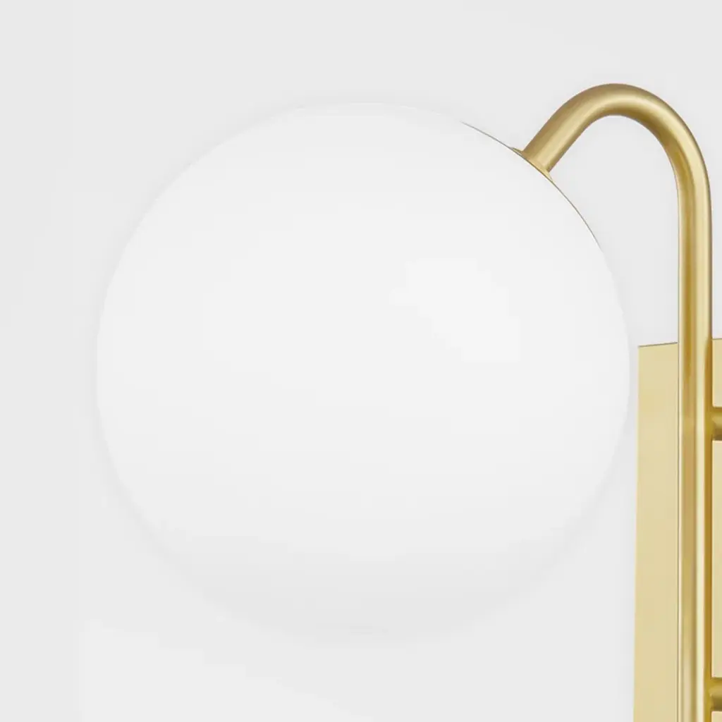 The fixture is globe lighting with a literal twist. Large opal matte globes jut from the ends of just barely bent gooseneck arms to cast a wide, warm glow. Available as a wall sconce or six-light, double-tier chandelier.