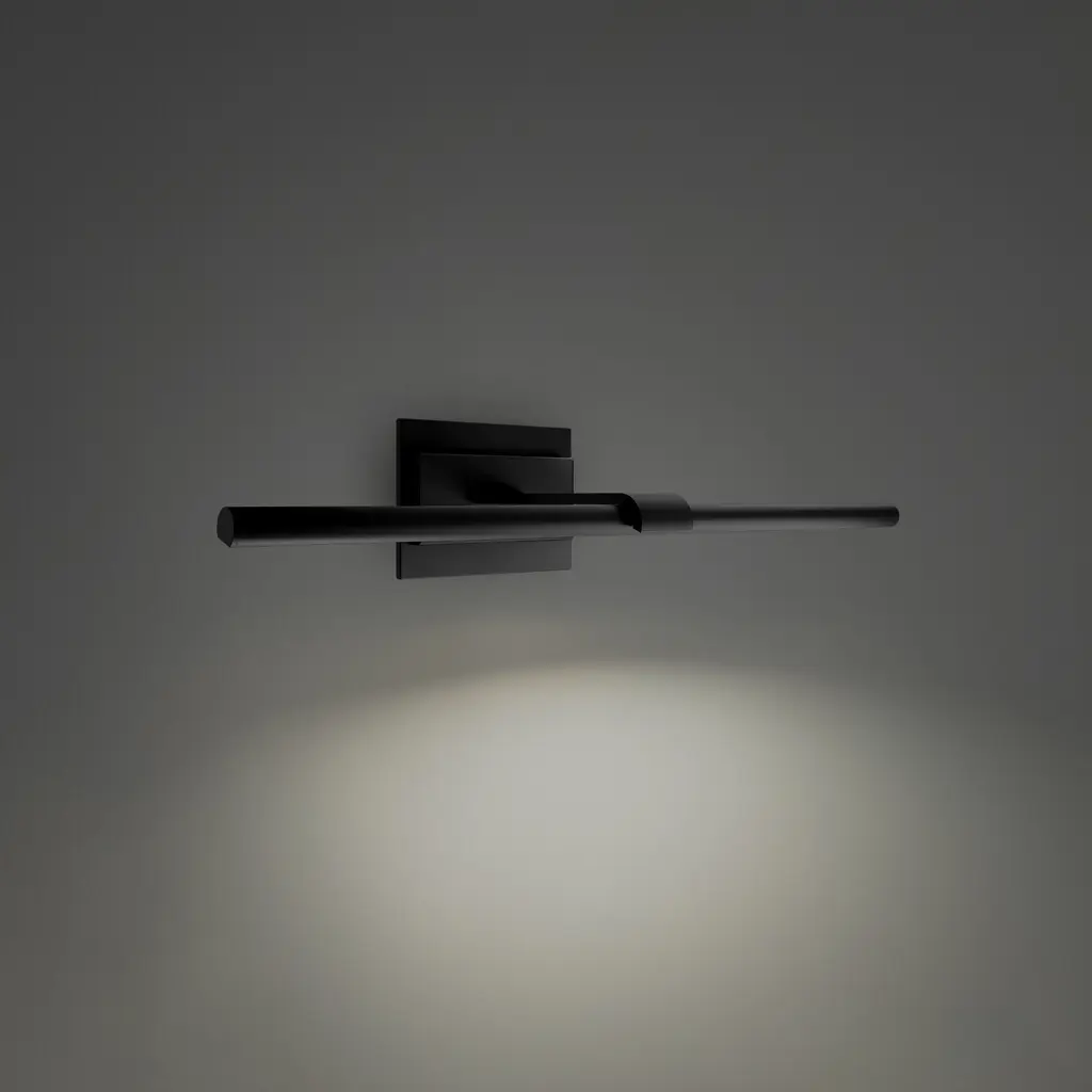 The Inlet picture light brings a magnetic connection to walls. A rounded bar fits seamlessly within its magnetic arm, allowing the picture light's head to rotate. The angle of the color temperature adjustable LED illumination can be perfectly adjusted to highlight artwork. Inlet is offered in 18, 24 and 30-inch sizes and is available in a choice of aged brass or black finishes.