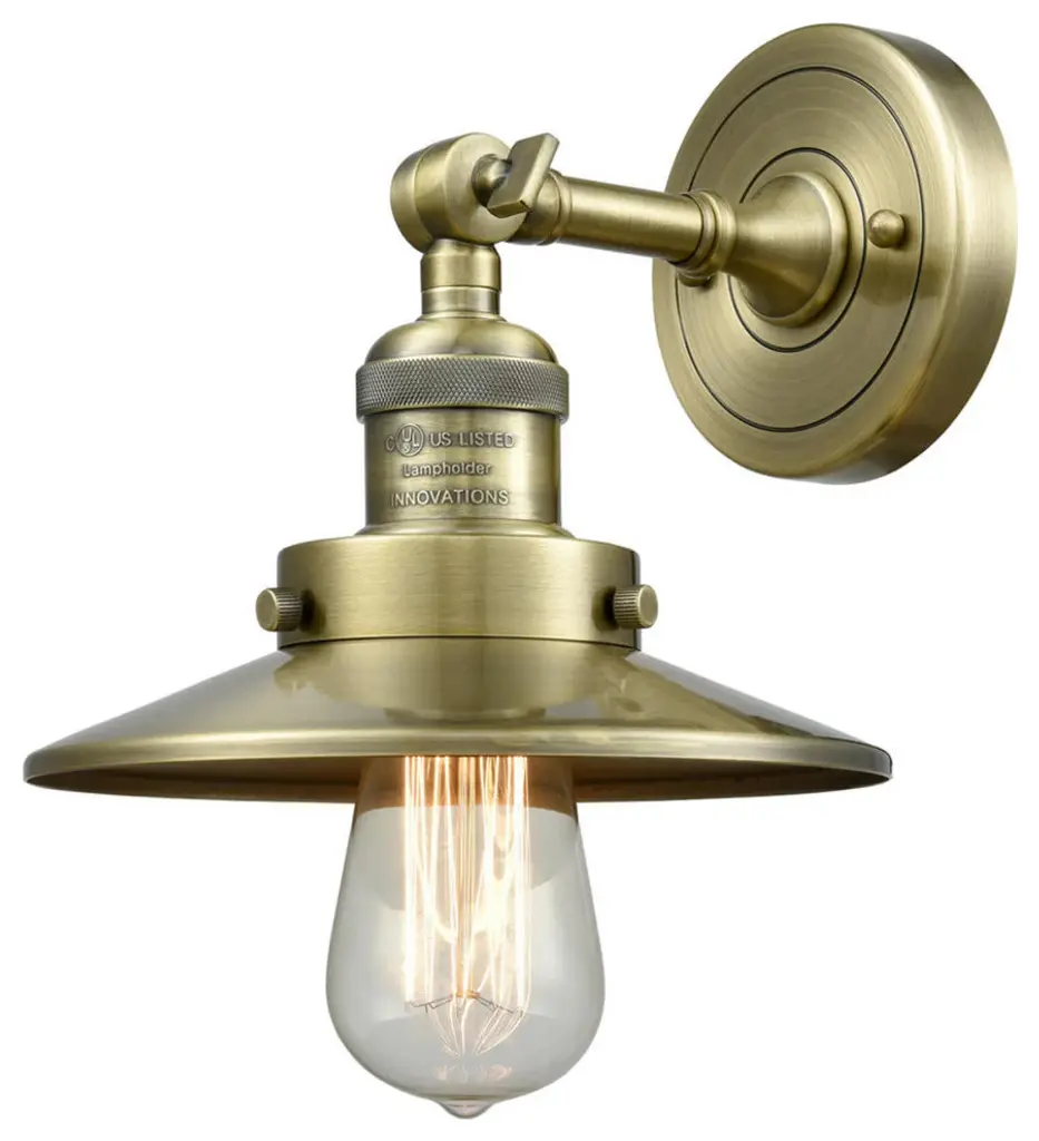 INNOVATIONS 203SW-BB-HFS-62-BB 1-Light Sconce Brushed Brass. Collection: Franklin Restoration. Style: Industrial, Restoration-Vintage, Traditional. Metal Finish: Brushed Brass. Metal Finish (Shade): Brushed Brass. Metal Finish (Canopy/Backplate): Brushed Brass. Material: Steel, Cast Brass, Glass. Dimension(in): 10. 25(H) x 7. 25(W) x 8. 75(Ext). Bulb: (1)60W Medium Base,Dimmable(Not Included). Maximum Wattage Per Socket: 100. Voltage: 120. Color Temperature (Kelvin): 2200. CRI: 99. 9. Lumens: 220. Glass Shade Description: Clear Hampden. Glass or Metal Shade Color: Clear. Shade Material: Glass. Glass Type: Transparent. Shade Shape: Globe. Shade Dimension(in): 7. 25(W) x 6. 25(H). Fitter Measurement (Glass Or Metal Shade Fitter Size): 3. 25 inch Fitter. Canopy Dimension(in): 4. 5(Dia). Backplate Dimension(in): 4. 5(Dia) x 0. 75(Depth). ADA Compliant: No. California Proposition 65 Warning Required: Yes. UL & ETL Certification: Damp Location.