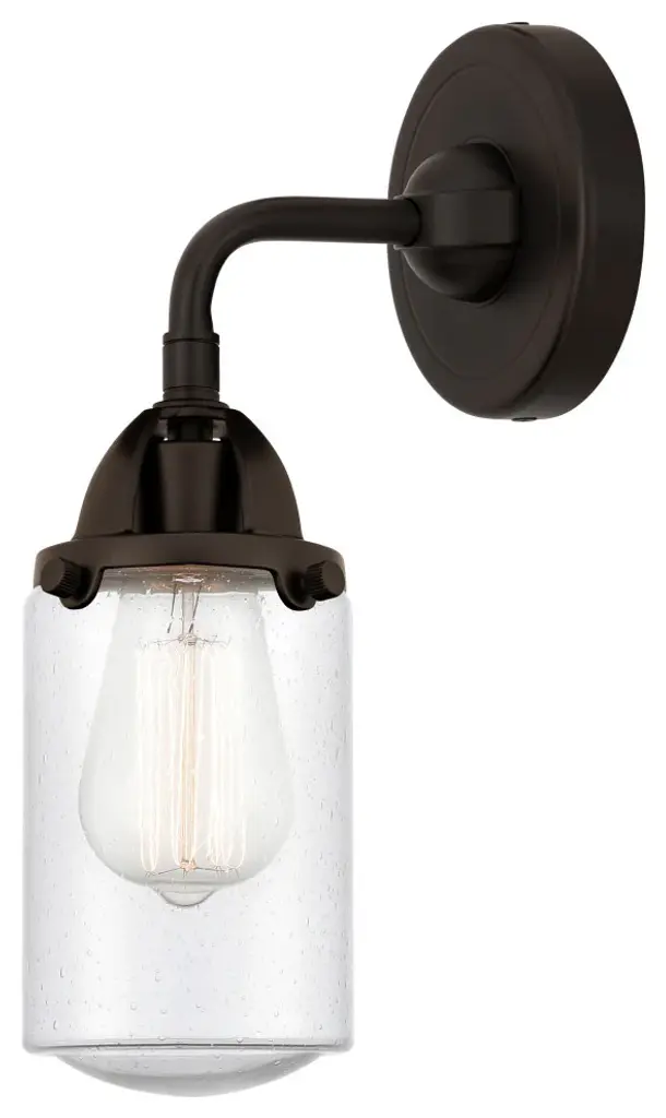 INNOVATIONS 288-1W-OB-G182S-LED 1-Light Sconce Oil Rubbed Bronze. Collection: Nouveau 2. Style: Transitional, Industrial, Restoration-Vintage. Metal Finish: Oil Rubbed Bronze. Metal Finish (Canopy/Backplate): Oil Rubbed Bronze. Material: Steel, Cast Brass, Glass. Dimension(in): 9. 875(H) x 5. 25(W) x 6. 875(Ext). Bulb: (1)6W Medium Base,Dimmable(Not Included). Maximum Wattage Per Socket: 100. Voltage: 120. Color Temperature (Kelvin): 2700. CRI: 82. Lumens: 600. Glass Shade Description: Clear Small Canton. Glass or Metal Shade Color: Clear. Shade Material: Glass. Glass Type: Transparent. Shade Shape: Bell. Shade Dimension(in): 5. 25(W) x 5. 5(H). Fitter Measurement (Glass Or Metal Shade Fitter Size): 3. 25 inch Fitter. Canopy Dimension(in): 4. 5(Dia). Backplate Dimension(in): 4. 5(Dia) x 0. 75(Depth). California Proposition 65 Warning Required: Yes. UL & ETL Certification: Damp Location.