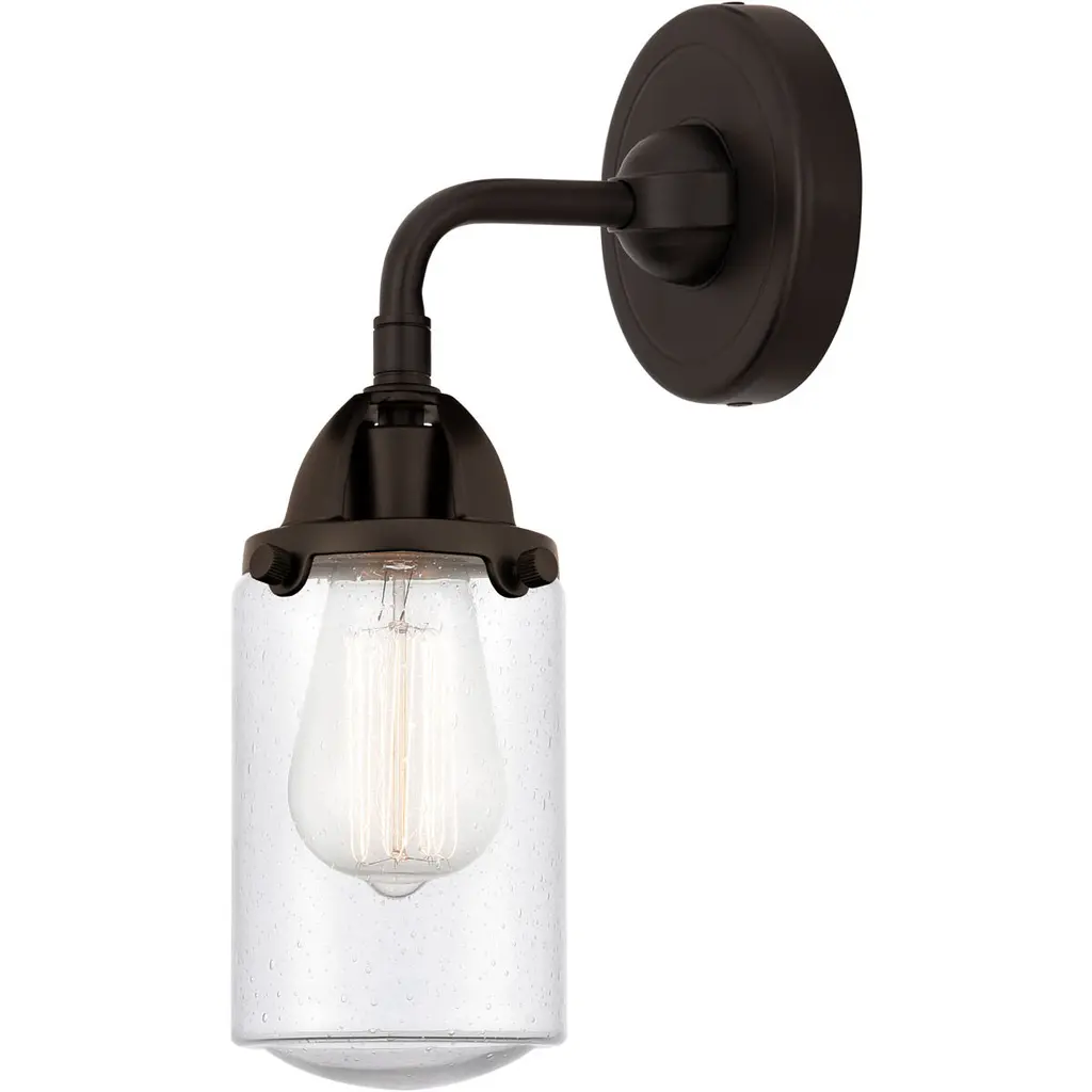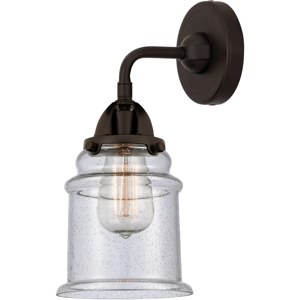 INNOVATIONS 288-1W-OB-G184-LED 1-Light Sconce Oil Rubbed Bronze. Collection: Nouveau 2. Style: Transitional, Industrial, Farmhouse, Seaside, Restoration-Vintage. Metal Finish: Oil Rubbed Bronze. Metal Finish (Canopy/Backplate): Oil Rubbed Bronze. Material: Steel, Cast Brass, Glass. Dimension(in): 11. 625(H) x 6(W) x 7. 25(Ext). Bulb: (1)6W Medium Base,Dimmable(Not Included). Maximum Wattage Per Socket: 100. Voltage: 120. Color Temperature (Kelvin): 2700. CRI: 82. Lumens: 600. Glass Shade Description: Seedy Canton. Glass or Metal Shade Color: Seedy. Shade Material: Glass. Glass Type: Seeded. Shade Shape: Bell. Shade Dimension(in): 6(W) x 7. 25(H). Fitter Measurement (Glass Or Metal Shade Fitter Size): 3. 25 inch Fitter. Canopy Dimension(in): 4. 5(Dia). Backplate Dimension(in): 4. 5(Dia) x 0. 75(Depth). California Proposition 65 Warning Required: Yes. UL & ETL Certification: Damp Location.