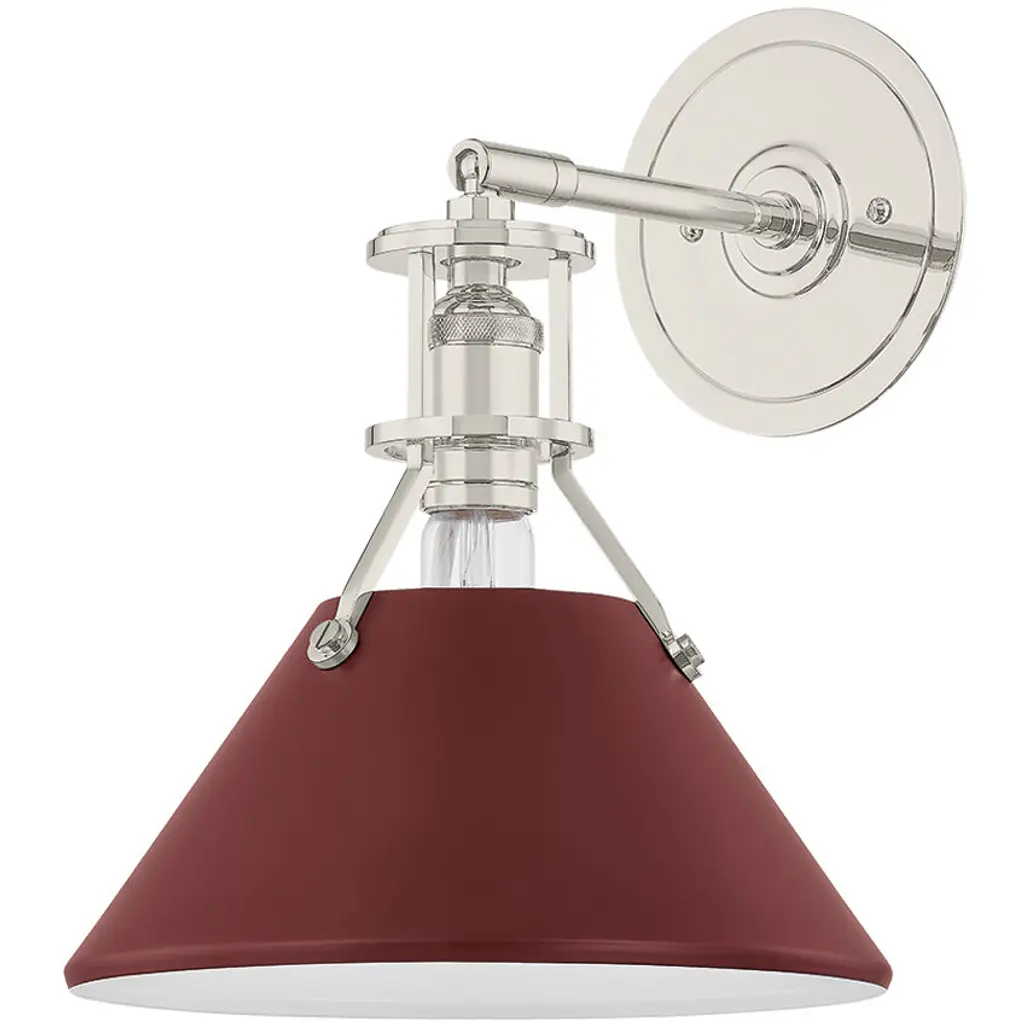 Innovations 288-1W-SN-M13-BK-LED Appalachian 1 Light 8" Sconce Brushed Satin Nickel. Collection: Nouveau 2. Style: Transitional, Industrial, Restoration-Vintage. Metal Finish: Brushed Satin Nickel. Metal Finish(Shade): Matte Black. Metal Finish(Canopy/Backplate): Brushed Satin Nickel. Material: Steel, Cast Brass, Glass. Dimensions(in): 10.5(H) x 8(W) x 8.25(Ext). Bulb: (1)6W LED(Included). Maximum Wattage Per Socket: 100. Voltage: 120. Dimmable: Yes. Color Temperature (Kelvin): 2700. Color Rendering Index (CRI): 82. Lumens: 600. Life Expectancy (Hours): 15000. Shade Shape: Cone. Glass or Metal Shade Color: Matte Black. Shade Material: Metal. Metal Shade Description: Matte Black Appalachian. Shade Dimensions(in): 8(W) x 6.125(H). Fitter Measurement (Glass or Metal Shade Fitter Size): 3.25" Fitter. Canopy Dimensions(in): 4.5(Dia). Backplate Dimenisons(in): 4.5(Dia) x 0.75(Depth). Mounting Center to Top: 2.25. Reversible (Can be hung with bulbs facing uo or down): Yes. California Proposition 65 Warning Required: Yes. UL and ETL Certification: Damp Location.