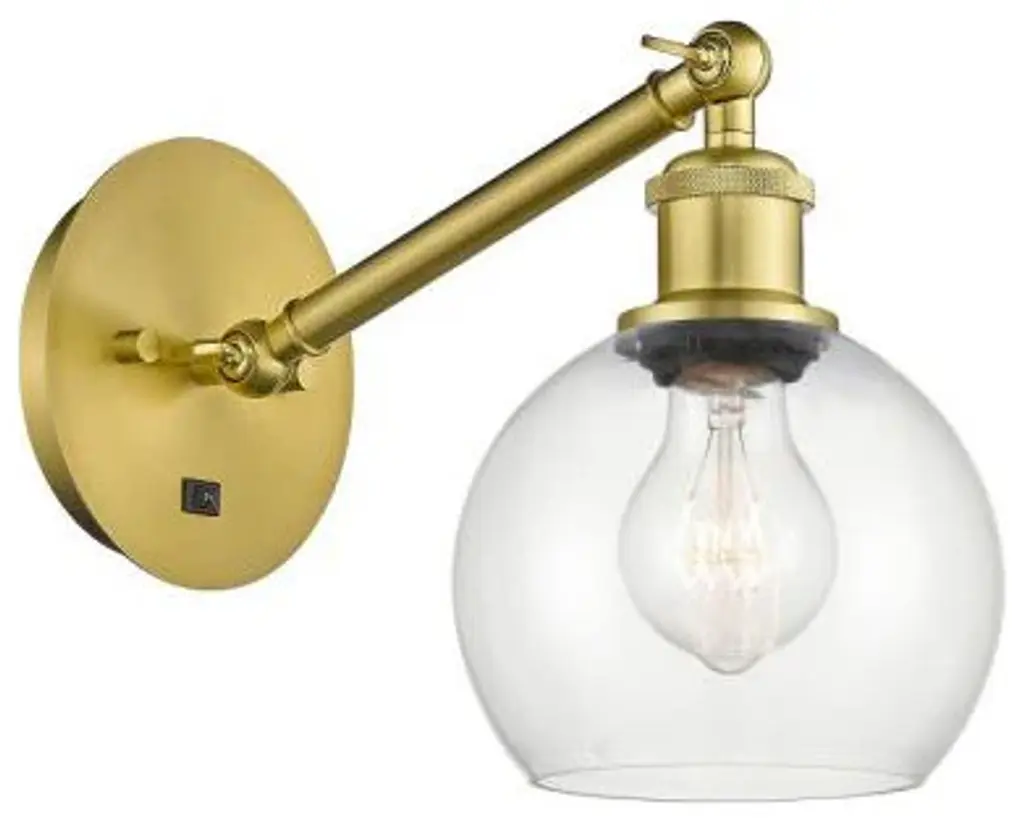 Innovations 317-1W-AC-G122-6 1-Light Sconce Antique Copper. Collection: Ballston. Style: Industrial, Modern Contempo, Restoration-Vintage, Transitional. Metal Finish: Antique Copper. Metal Finish (Canopy/Backplate): Antique Copper. Material: Steel, Cast Brass, Glass. Dimension(in): 11. 875(H) x 6(W) x 13(Ext). Bulb: (1)60W Medium Base,Dimmable(Not Included). Maximum Wattage Per Socket: 100. Voltage: 120. Color Temperature (Kelvin): 2200. CRI: 99. 9. Lumens: 220. Glass Shade Description: Clear Athens. Glass or Metal Shade Color: Clear. Shade Material: Glass. Glass Type: Transparent. Shade Shape: Sphere. Shade Dimension(in): 6(W) x 5. 125(H). Fitter Measurement (Glass Or Metal Shade Fitter Size): Neckless with a 2. 125 inch Hole. Backplate Dimension(in): 5. 3(Dia) x 0. 75(Depth). ADA Compliant: No. California Proposition 65 Warning Required: Yes. UL and ETL Certification: Damp Location.