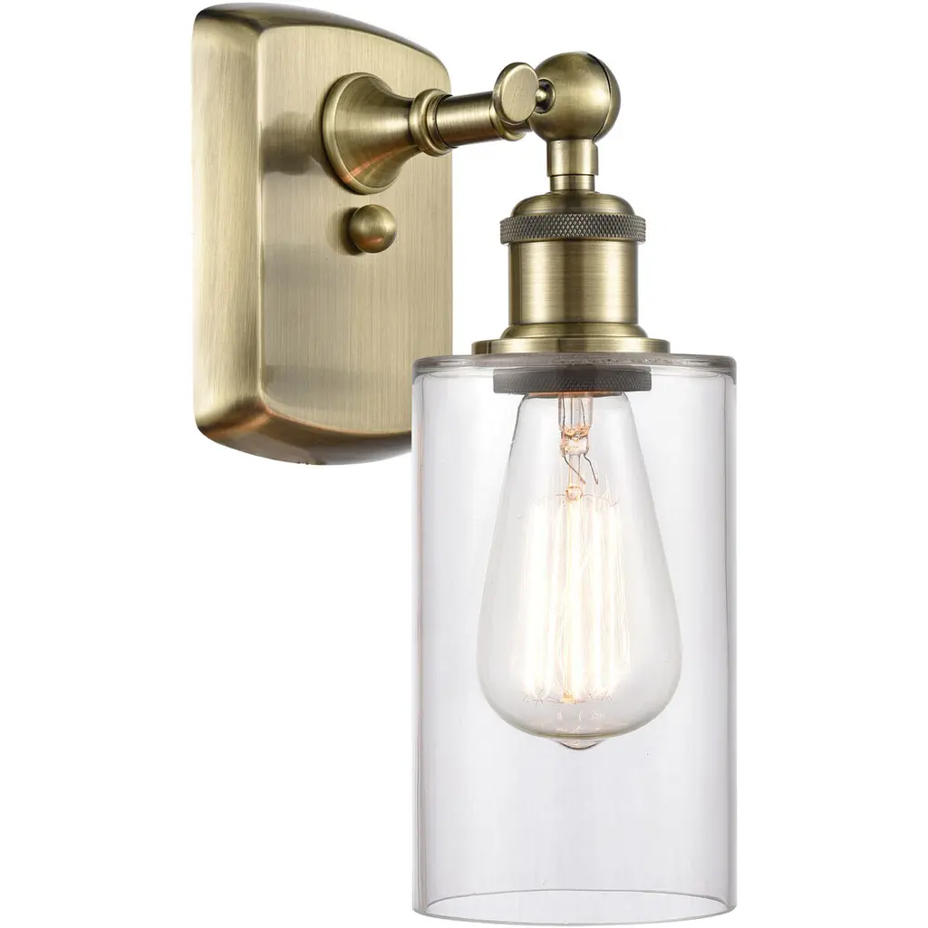 Innovations 317-1W-BB-G802 1-Light Sconce Brushed Brass. Collection: Ballston. Style: Art Nouveau, Transitional, Modern. Metal Finish: Brushed Brass. Metal Finish (Canopy/Backplate): Brushed Brass. Material: Steel, Cast Brass, Glass. Dimension(in): 12. 625(H) x 5. 3(W) x 11. 9375(Ext). Bulb: (1)60W Medium Base,Dimmable(Not Included). Maximum Wattage Per Socket: 100. Voltage: 120. Color Temperature (Kelvin): 2200. CRI: 99. 9. Lumens: 220. Glass Shade Description: Clear Clymer. Glass or Metal Shade Color: Clear. Shade Material: Glass. Glass Type: Transparent. Shade Shape: Cylinder. Shade Dimension(in): 3. 875(W) x 5. 875(H). Fitter Measurement (Glass Or Metal Shade Fitter Size): Neckless with a 1. 625 inch Hole. Backplate Dimension(in): 5. 3(Dia) x 0. 75(Depth). ADA Compliant: No. California Proposition 65 Warning Required: Yes. UL and ETL Certification: Damp Location.