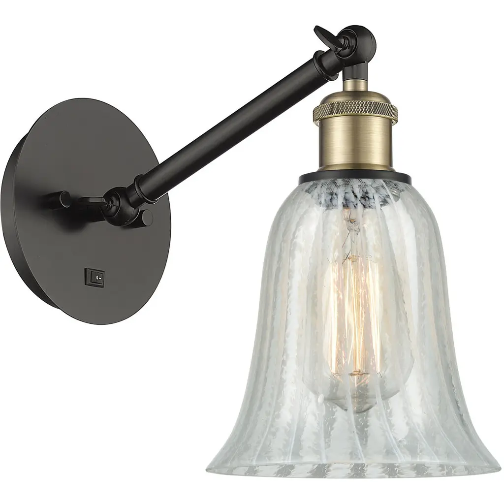 Innovations 317-1W-BK-G2511-LED 1-Light Sconce Matte Black. Collection: Ballston. Style: Industrial, Modern Contempo, Restoration-Vintage, Transitional. Metal Finish: Matte Black. Metal Finish (Canopy/Backplate): Matte Black. Material: Steel, Cast Brass, Glass. Dimension(in): 12. 75(H) x 5. 3(W) x 12. 5(Ext). Bulb: (1)6W Medium Base,Dimmable(Not Included). Maximum Wattage Per Socket: 100. Voltage: 120. Color Temperature (Kelvin): 2700. CRI: 82. Lumens: 600. Glass Shade Description: Mouchette Caledonia. Glass or Metal Shade Color: Mouchette. Shade Material: Glass. Glass Type: Colorful. Shade Shape: Bell. Shade Dimension(in): 5(W) x 6(H). Fitter Measurement (Glass Or Metal Shade Fitter Size): Neckless with a 2. 125 inch Hole. Backplate Dimension(in): 5. 3(Dia) x 0. 75(Depth). ADA Compliant: No. California Proposition 65 Warning Required: Yes. UL and ETL Certification: Damp Location.