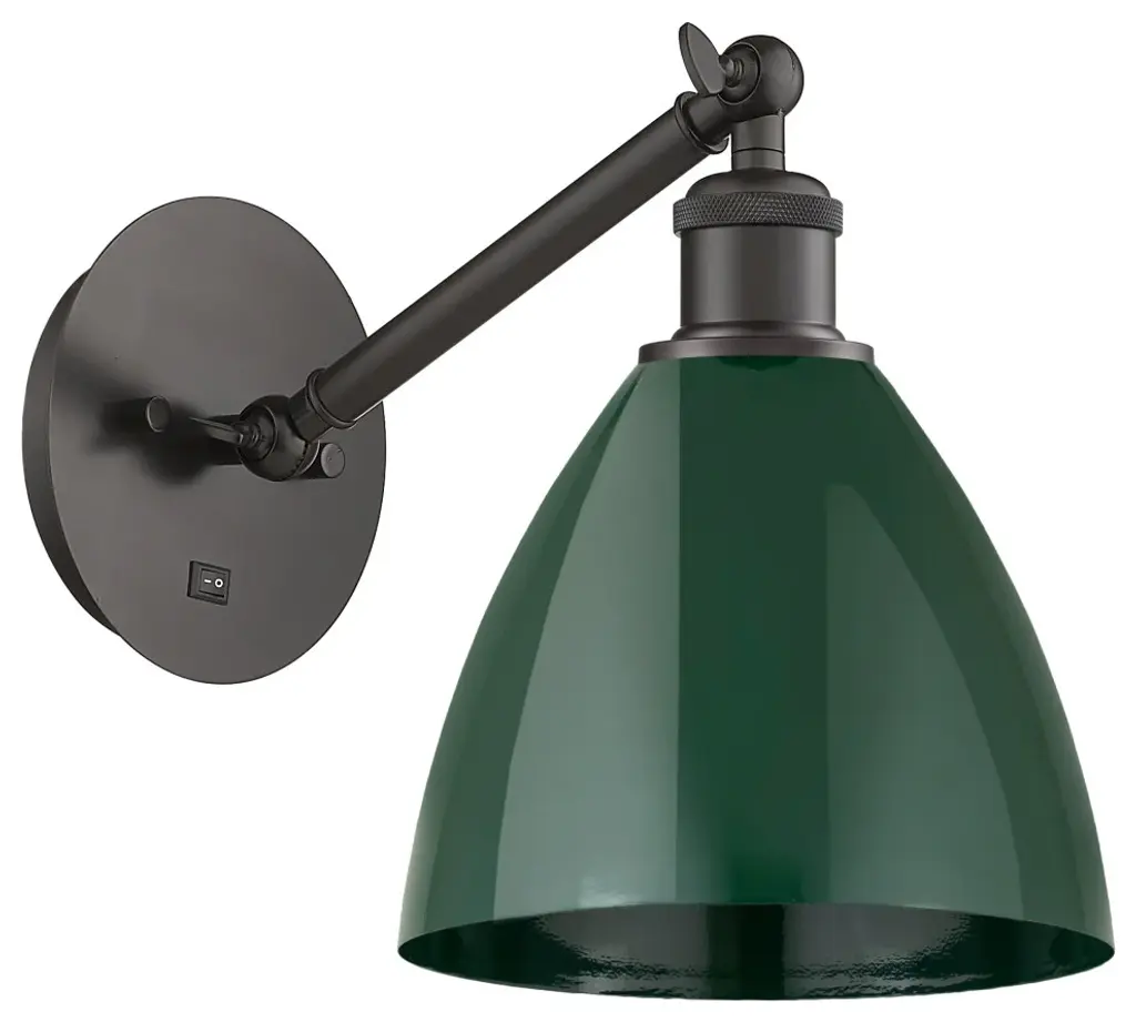 Innovations 317-1W-BK-MBD-75-GR-LED 1-Light Sconce Matte Black. Collection: Ballston. Style: Industrial, Farmhouse, Restoration-Vintage. Metal Finish: Matte Black. Metal Finish (Shade): Matte Green. Metal Finish (Canopy/Backplate): Matte Black. Material: Steel, Cast Brass. Dimension(in): 13. 25(H) x 7. 5(W) x 13. 75(Ext). Bulb: (1)6W Medium Base,Dimmable(Not Included). Maximum Wattage Per Socket: 100. Voltage: 120. Color Temperature (Kelvin): 2700. CRI: 82. Lumens: 600. Glass or Metal Shade Color: Green. Shade Material: Metal. Shade Shape: Cone. Metal Shade Description: Green Plymouth Dome. Shade Dimension(in): 7. 5(W) x 6. 5(H). Fitter Measurement (Glass Or Metal Shade Fitter Size): Neckless with a 2. 125 inch Hole. Backplate Dimension(in): 5. 3(Dia) x 0. 75(Depth). ADA Compliant: No. California Proposition 65 Warning Required: Yes. UL and ETL Certification: Damp Location.