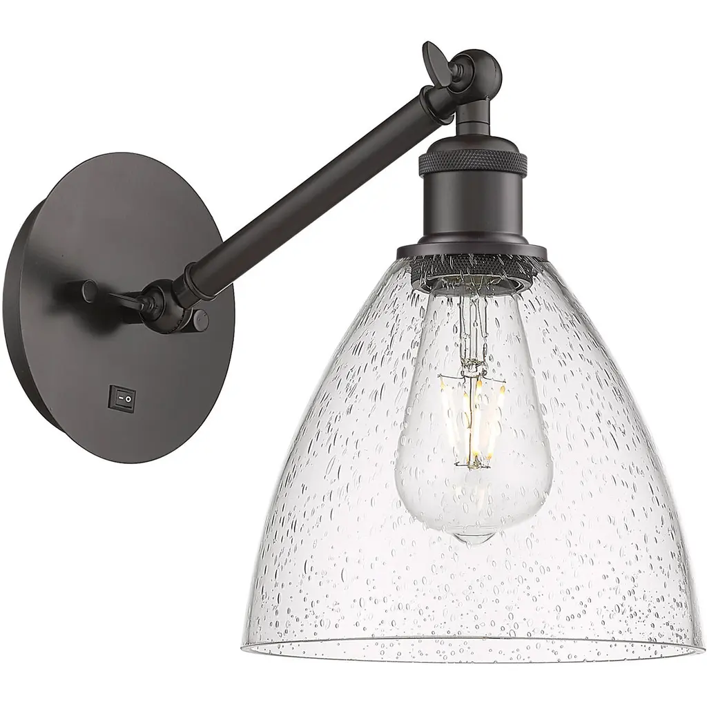 Innovations 317-1W-OB-G442-LED 1-Light Sconce Oil Rubbed Bronze. Collection: Ballston. Style: Art Nouveau, Industrial, Restoration-Vintage, Transitional. Metal Finish: Oil Rubbed Bronze. Metal Finish (Canopy/Backplate): Oil Rubbed Bronze. Material: Steel, Cast Brass, Glass. Dimension(in): 12. 75(H) x 5. 75(W) x 12. 875(Ext). Bulb: (1)6W Medium Base,Dimmable(Not Included). Maximum Wattage Per Socket: 100. Voltage: 120. Color Temperature (Kelvin): 2700. CRI: 82. Lumens: 600. Glass Shade Description: Clear Brookfield. Glass or Metal Shade Color: Clear. Shade Material: Glass. Glass Type: Transparent; Ribbed. Shade Shape: Drum. Shade Dimension(in): 5. 75(W) x 6(H). Fitter Measurement (Glass Or Metal Shade Fitter Size): Neckless with a 2. 125 inch Hole. Backplate Dimension(in): 5. 3(Dia) x 0. 75(Depth). ADA Compliant: No. California Proposition 65 Warning Required: Yes. UL and ETL Certification: Damp Location.