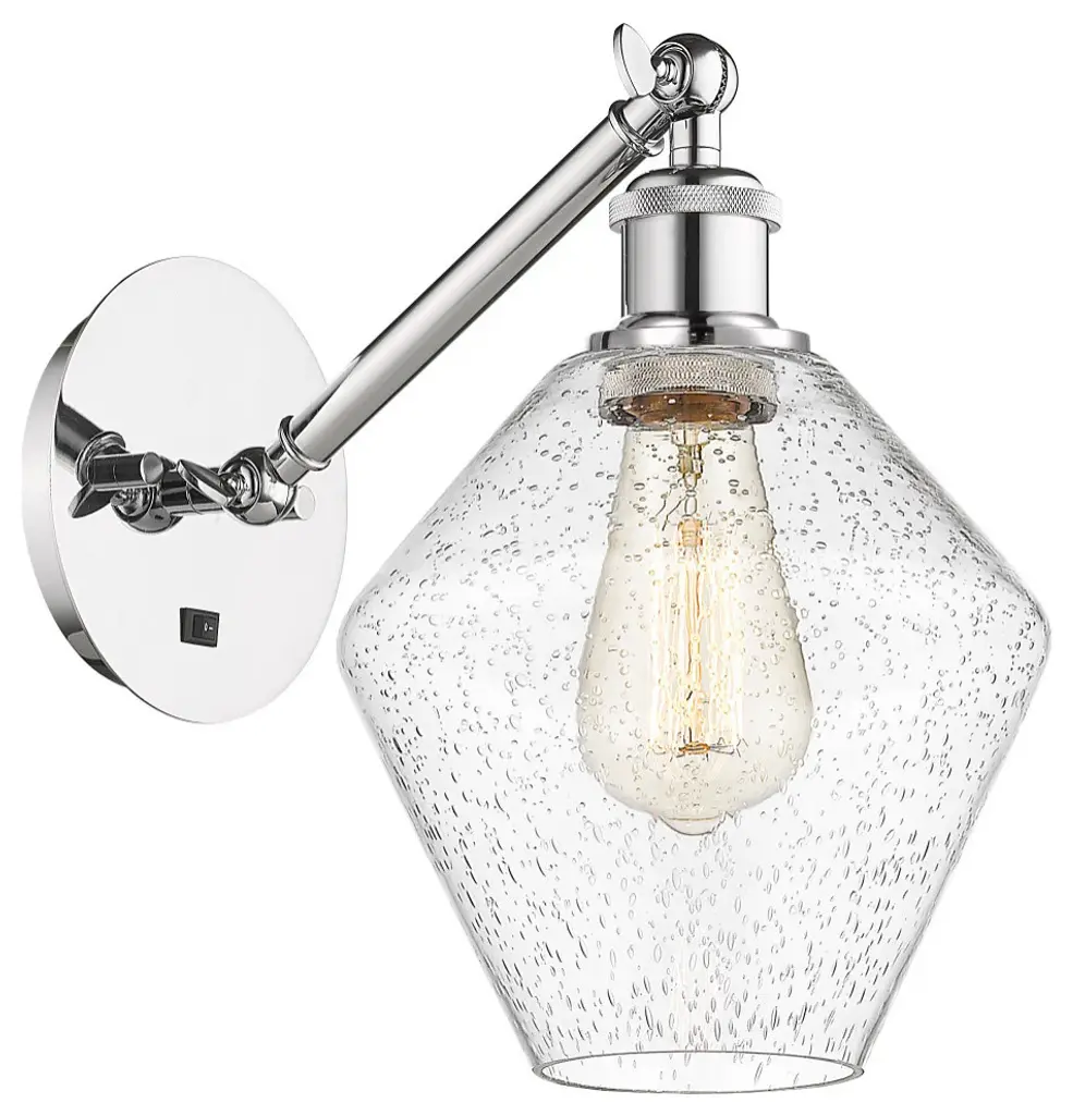 Innovations 317-1W-PC-G104-LED 1-Light Sconce Polished Chrome. Collection: Ballston. Style: Industrial, Modern Contempo, Restoration-Vintage, Transitional. Metal Finish: Polished Chrome. Metal Finish (Canopy/Backplate): Polished Chrome. Material: Steel, Cast Brass, Glass. Dimension(in): 12. 75(H) x 6(W) x 13(Ext). Bulb: (1)6W Medium Base,Dimmable(Not Included). Maximum Wattage Per Socket: 100. Voltage: 120. Color Temperature (Kelvin): 2700. CRI: 82. Lumens: 600. Glass Shade Description: Seedy Belfast. Glass or Metal Shade Color: Seedy. Shade Material: Glass. Glass Type: Seeded. Shade Shape: Sphere. Shade Dimension(in): 6(W) x 6(H). Fitter Measurement (Glass Or Metal Shade Fitter Size): Neckless with a 2. 125 inch Hole. Backplate Dimension(in): 5. 3(Dia) x 0. 75(Depth). ADA Compliant: No. California Proposition 65 Warning Required: Yes. UL and ETL Certification: Damp Location.