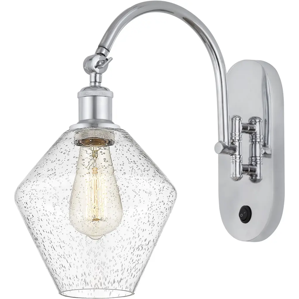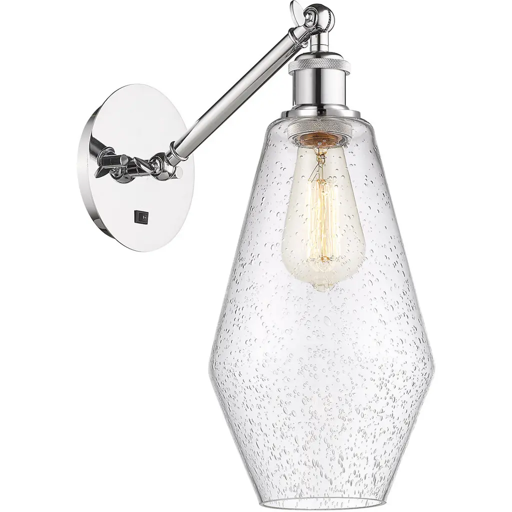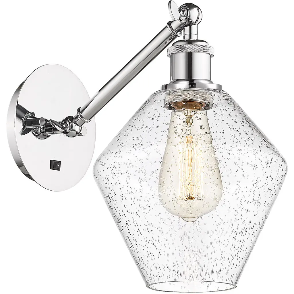 Innovations 317-1W-PC-G654-8 1-Light Sconce Polished Chrome. Collection: Ballston. Style: Industrial, Modern Contempo, Restoration-Vintage, Transitional. Metal Finish: Polished Chrome. Metal Finish (Canopy/Backplate): Polished Chrome. Material: Steel, Cast Brass, Glass. Dimension(in): 12. 375(H) x 8(W) x 13. 75(Ext). Bulb: (1)60W Medium Base,Dimmable(Not Included). Maximum Wattage Per Socket: 100. Voltage: 120. Color Temperature (Kelvin): 2200. CRI: 99. 9. Lumens: 220. Glass Shade Description: Seedy Cindyrella 8". Glass or Metal Shade Color: Seedy. Shade Material: Glass. Glass Type: Transparent. Shade Shape: Geometric. Shade Dimension(in): 8(W) x 7. 5(H). Fitter Measurement (Glass Or Metal Shade Fitter Size): Neckless with a 2. 125 inch Hole. Backplate Dimension(in): 5. 3(Dia) x 0. 75(Depth). ADA Compliant: No. California Proposition 65 Warning Required: Yes. UL and ETL Certification: Damp Location.
