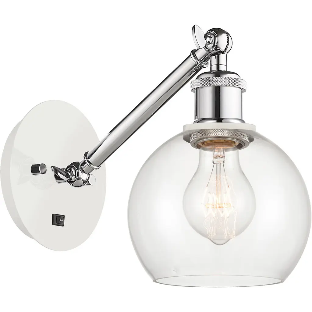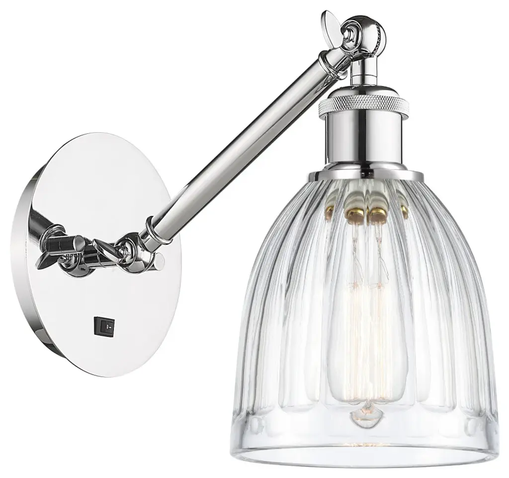 Innovations 317-1W-PN-G1013-LED 1-Light Sconce Polished Nickel. Collection: Ballston. Style: Art Nouveau, Industrial, Restoration-Vintage, Transitional. Metal Finish: Polished Nickel. Metal Finish (Canopy/Backplate): Polished Nickel. Material: Steel, Cast Brass, Glass. Dimension(in): 12. 75(H) x 6(W) x 13(Ext). Bulb: (1)6W Medium Base,Dimmable(Not Included). Maximum Wattage Per Socket: 100. Voltage: 120. Color Temperature (Kelvin): 2700. CRI: 82. Lumens: 600. Glass Shade Description: Deco Swirl Belfast. Glass or Metal Shade Color: Deco Swirl. Shade Material: Glass. Glass Type: Transparent. Shade Shape: Sphere. Shade Dimension(in): 6(W) x 6(H). Fitter Measurement (Glass Or Metal Shade Fitter Size): Neckless with a 2. 125 inch Hole. Backplate Dimension(in): 5. 3(Dia) x 0. 75(Depth). ADA Compliant: No. California Proposition 65 Warning Required: Yes. UL and ETL Certification: Damp Location.