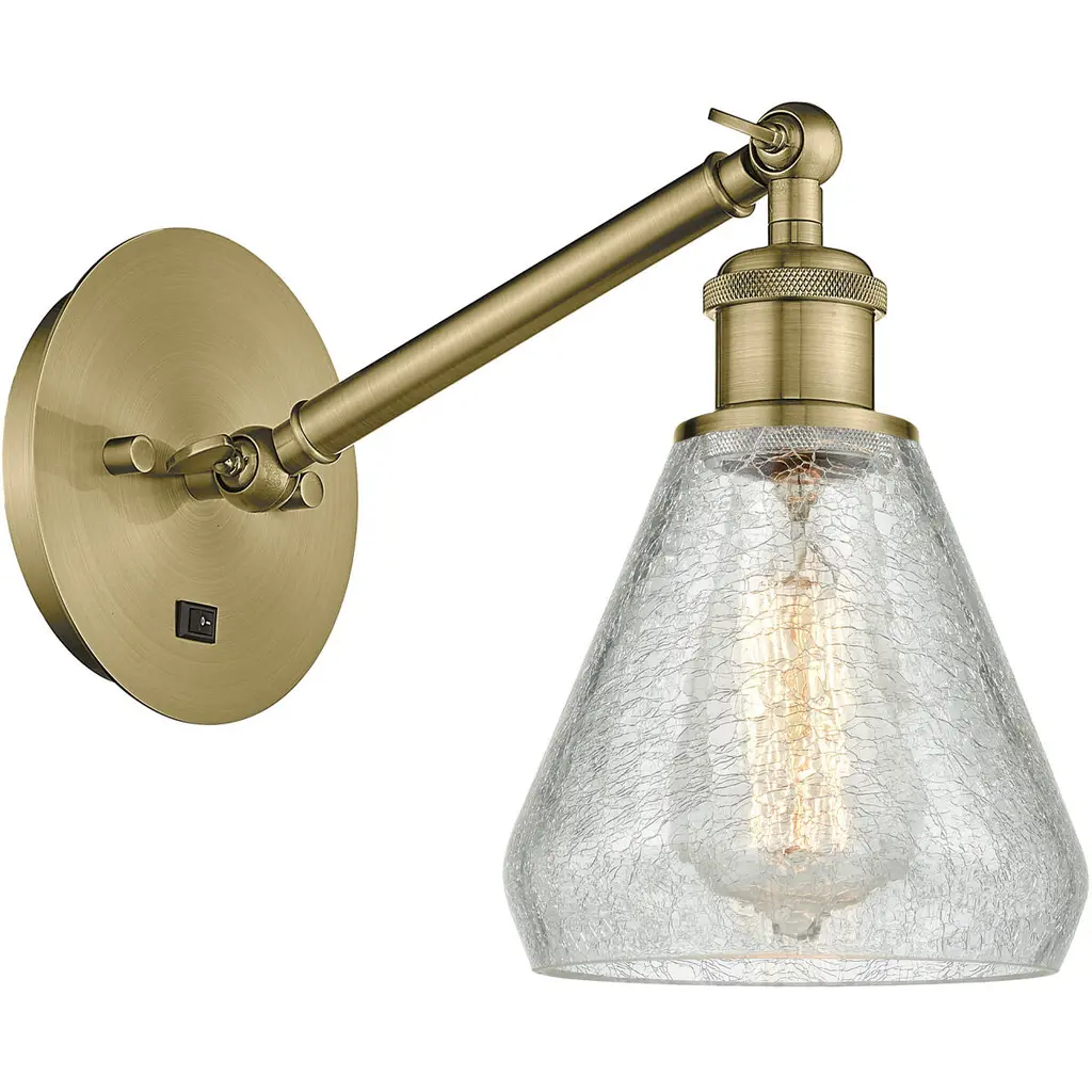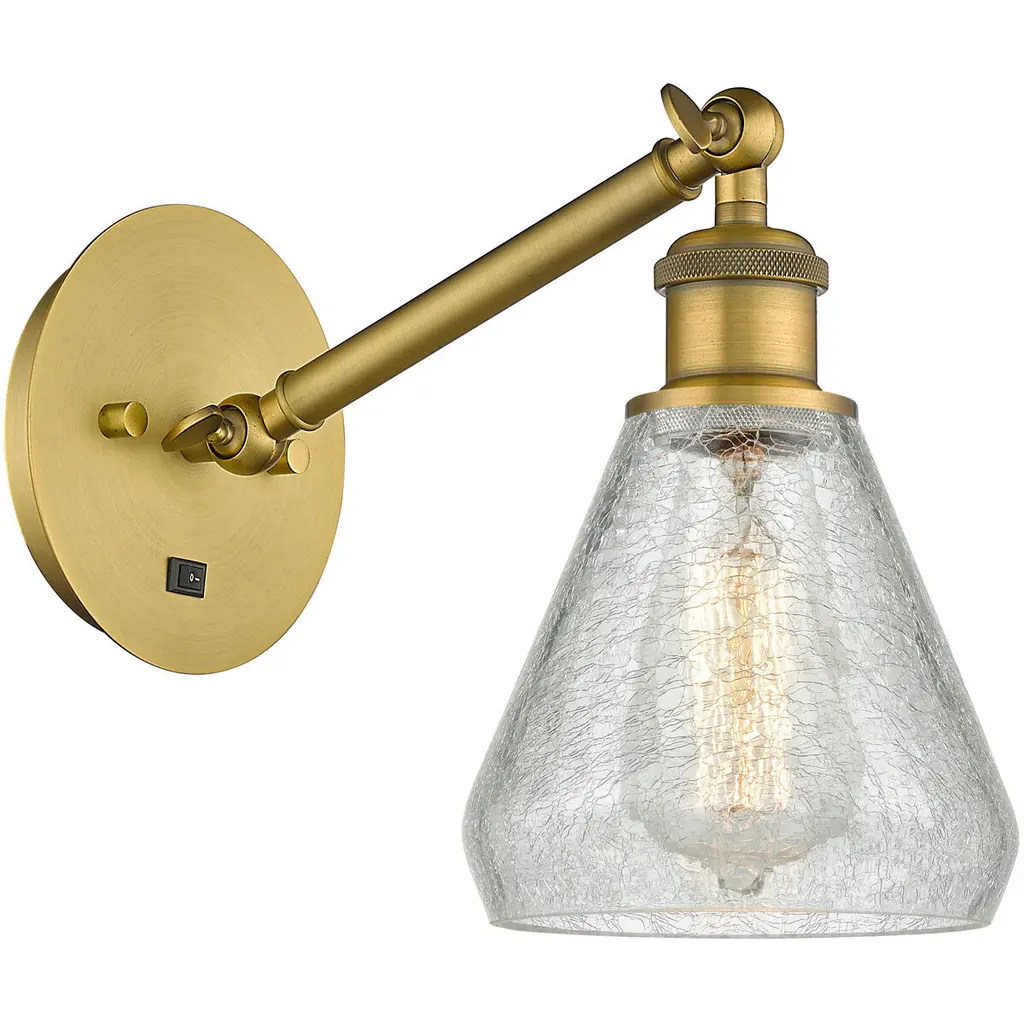 Innovations 317-1W-SG-G112 1-Light Sconce Satin Gold. Collection: Ballston. Style: Art Nouveau, Industrial, Restoration-Vintage, Transitional. Metal Finish: Satin Gold. Metal Finish (Canopy/Backplate): Satin Gold. Material: Steel, Cast Brass, Glass. Dimension(in): 12. 75(H) x 5. 3(W) x 12. 5(Ext). Bulb: (1)60W Medium Base,Dimmable(Not Included). Maximum Wattage Per Socket: 100. Voltage: 120. Color Temperature (Kelvin): 2200. CRI: 99. 9. Lumens: 220. Glass Shade Description: Clear Cobbleskill. Glass or Metal Shade Color: Clear. Shade Material: Glass. Glass Type: Transparent; Water. Shade Shape: Cylinder. Shade Dimension(in): 5(W) x 6(H). Fitter Measurement (Glass Or Metal Shade Fitter Size): Neckless with a 2. 125 inch Hole. Backplate Dimension(in): 5. 3(Dia) x 0. 75(Depth). ADA Compliant: No. California Proposition 65 Warning Required: Yes. UL and ETL Certification: Damp Location.