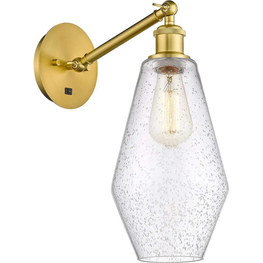 Innovations 317-1W-SG-G652-7 1-Light Sconce Satin Gold. Collection: Ballston. Style: Industrial, Modern Contempo, Restoration-Vintage, Transitional. Metal Finish: Satin Gold. Metal Finish (Canopy/Backplate): Satin Gold. Material: Steel, Cast Brass, Glass. Dimension(in): 16(H) x 7(W) x 13. 25(Ext). Bulb: (1)60W Medium Base,Dimmable(Not Included). Maximum Wattage Per Socket: 100. Voltage: 120. Color Temperature (Kelvin): 2200. CRI: 99. 9. Lumens: 220. Glass Shade Description: Clear Cindyrella 7". Glass or Metal Shade Color: Clear. Shade Material: Glass. Glass Type: Transparent. Shade Shape: Geometric. Shade Dimension(in): 7(W) x 11(H). Fitter Measurement (Glass Or Metal Shade Fitter Size): Neckless with a 2. 125 inch Hole. Backplate Dimension(in): 5. 3(Dia) x 0. 75(Depth). ADA Compliant: No. California Proposition 65 Warning Required: Yes. UL and ETL Certification: Damp Location.