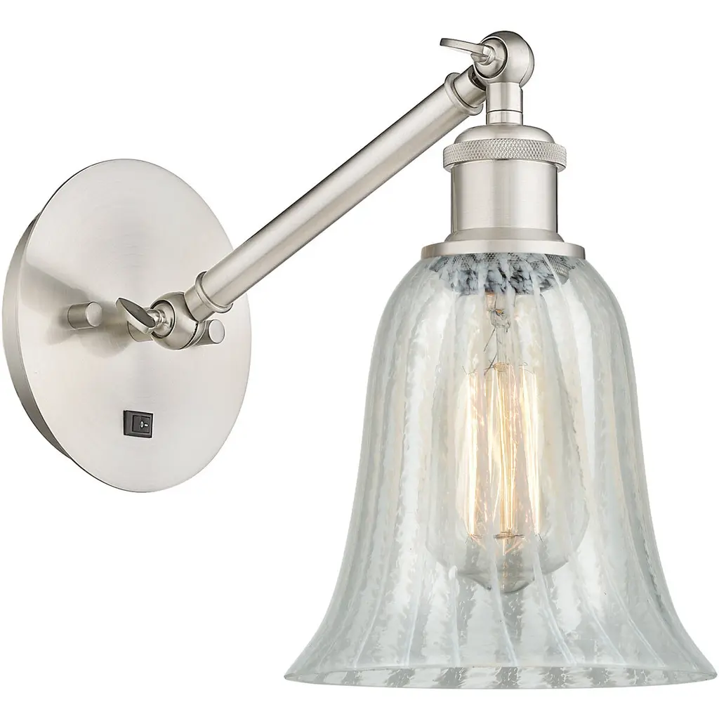 Innovations 317-1W-SN-G1013-LED 1-Light Sconce Brushed Satin Nickel. Collection: Ballston. Style: Art Nouveau, Industrial, Restoration-Vintage, Transitional. Metal Finish: Brushed Satin Nickel. Metal Finish (Canopy/Backplate): Brushed Satin Nickel. Material: Steel, Cast Brass, Glass. Dimension(in): 12. 75(H) x 6(W) x 13(Ext). Bulb: (1)6W Medium Base,Dimmable(Not Included). Maximum Wattage Per Socket: 100. Voltage: 120. Color Temperature (Kelvin): 2700. CRI: 82. Lumens: 600. Glass Shade Description: Deco Swirl Belfast. Glass or Metal Shade Color: Deco Swirl. Shade Material: Glass. Glass Type: Transparent. Shade Shape: Sphere. Shade Dimension(in): 6(W) x 6(H). Fitter Measurement (Glass Or Metal Shade Fitter Size): Neckless with a 2. 125 inch Hole. Backplate Dimension(in): 5. 3(Dia) x 0. 75(Depth). ADA Compliant: No. California Proposition 65 Warning Required: Yes. UL and ETL Certification: Damp Location.