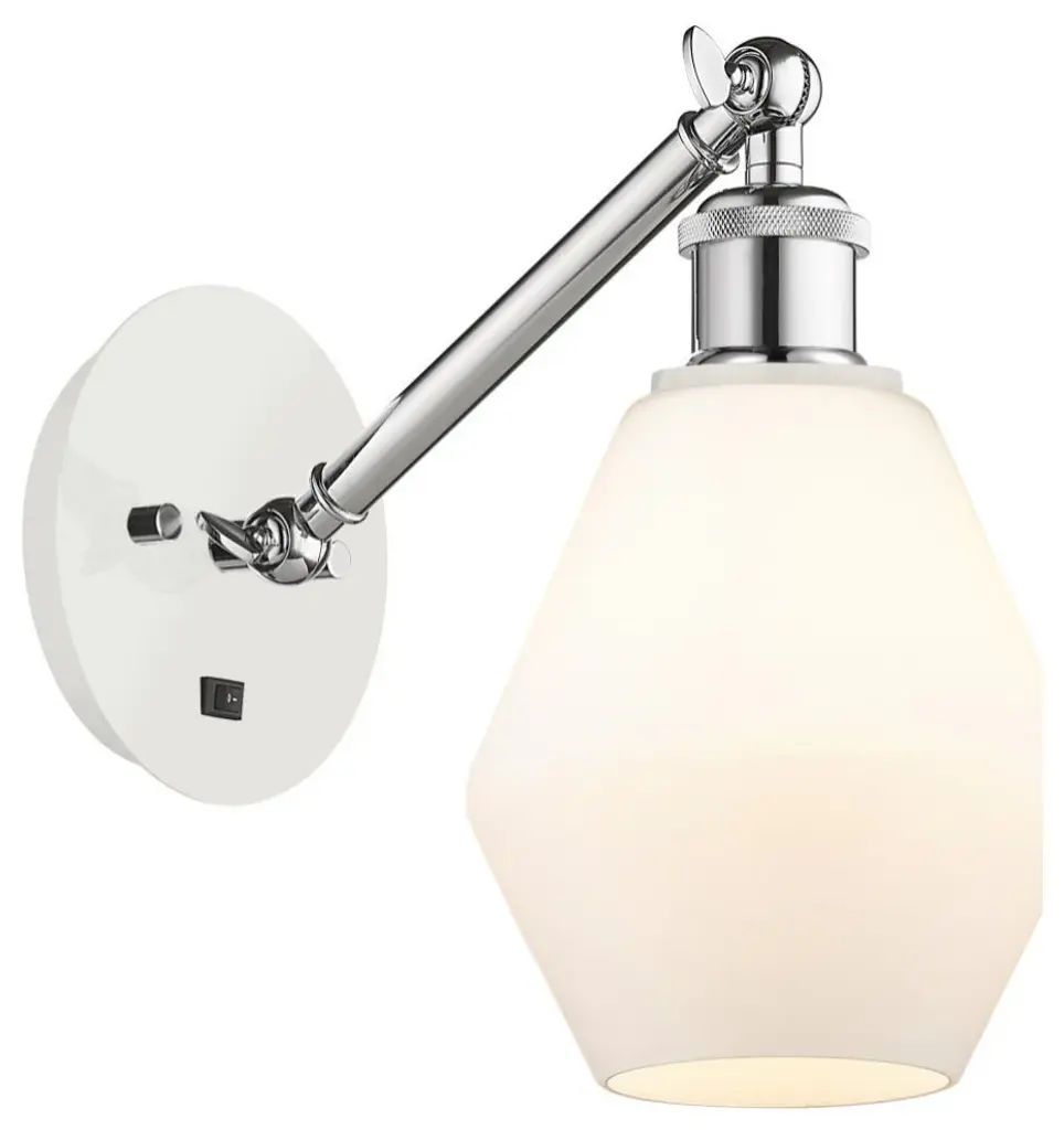 Innovations 317-1W-SN-G651-6-LED 1-Light Sconce Brushed Satin Nickel. Collection: Ballston. Style: Industrial, Modern Contempo, Restoration-Vintage, Transitional. Metal Finish: Brushed Satin Nickel. Metal Finish (Canopy/Backplate): Brushed Satin Nickel. Material: Steel, Cast Brass, Glass. Dimension(in): 11. 375(H) x 6(W) x 12. 875(Ext). Bulb: (1)6W Medium Base,Dimmable(Not Included). Maximum Wattage Per Socket: 100. Voltage: 120. Color Temperature (Kelvin): 2700. CRI: 82. Lumens: 600. Glass Shade Description: Cased Matte White Cindyrella 6". Glass or Metal Shade Color: Cased Matte White. Shade Material: Glass. Glass Type: Frosted. Shade Shape: Geometric. Shade Dimension(in): 6(W) x 6. 5(H). Fitter Measurement (Glass Or Metal Shade Fitter Size): Neckless with a 2. 125 inch Hole. Backplate Dimension(in): 5. 3(Dia) x 0. 75(Depth). ADA Compliant: No. California Proposition 65 Warning Required: Yes. UL and ETL Certification: Damp Location.