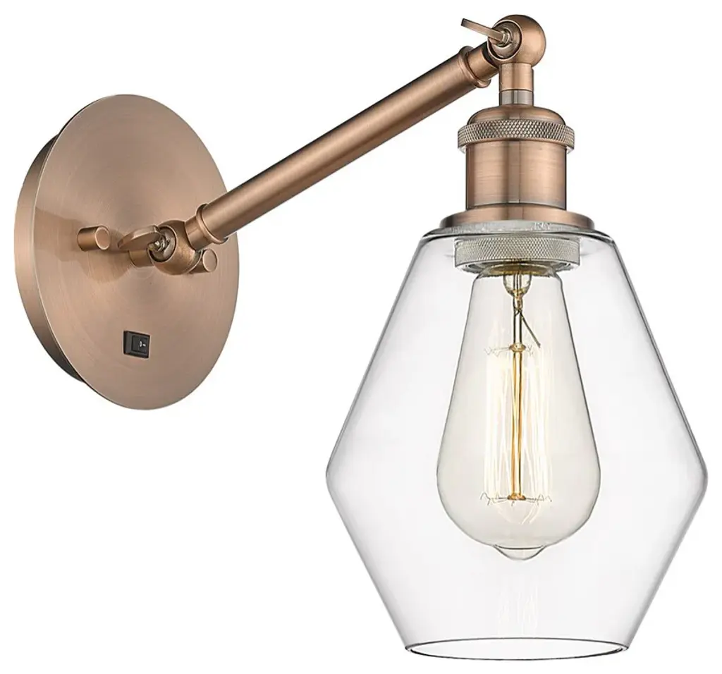 Innovations 317-1W-SN-G652-7 1-Light Sconce Brushed Satin Nickel. Collection: Ballston. Style: Industrial, Modern Contempo, Restoration-Vintage, Transitional. Metal Finish: Brushed Satin Nickel. Metal Finish (Canopy/Backplate): Brushed Satin Nickel. Material: Steel, Cast Brass, Glass. Dimension(in): 16(H) x 7(W) x 13. 25(Ext). Bulb: (1)60W Medium Base,Dimmable(Not Included). Maximum Wattage Per Socket: 100. Voltage: 120. Color Temperature (Kelvin): 2200. CRI: 99. 9. Lumens: 220. Glass Shade Description: Clear Cindyrella 7". Glass or Metal Shade Color: Clear. Shade Material: Glass. Glass Type: Transparent. Shade Shape: Geometric. Shade Dimension(in): 7(W) x 11(H). Fitter Measurement (Glass Or Metal Shade Fitter Size): Neckless with a 2. 125 inch Hole. Backplate Dimension(in): 5. 3(Dia) x 0. 75(Depth). ADA Compliant: No. California Proposition 65 Warning Required: Yes. UL and ETL Certification: Damp Location.