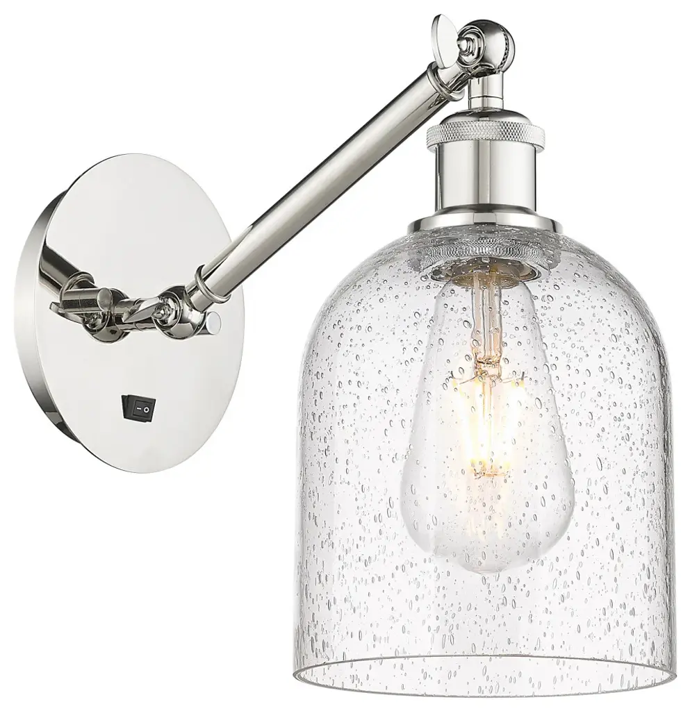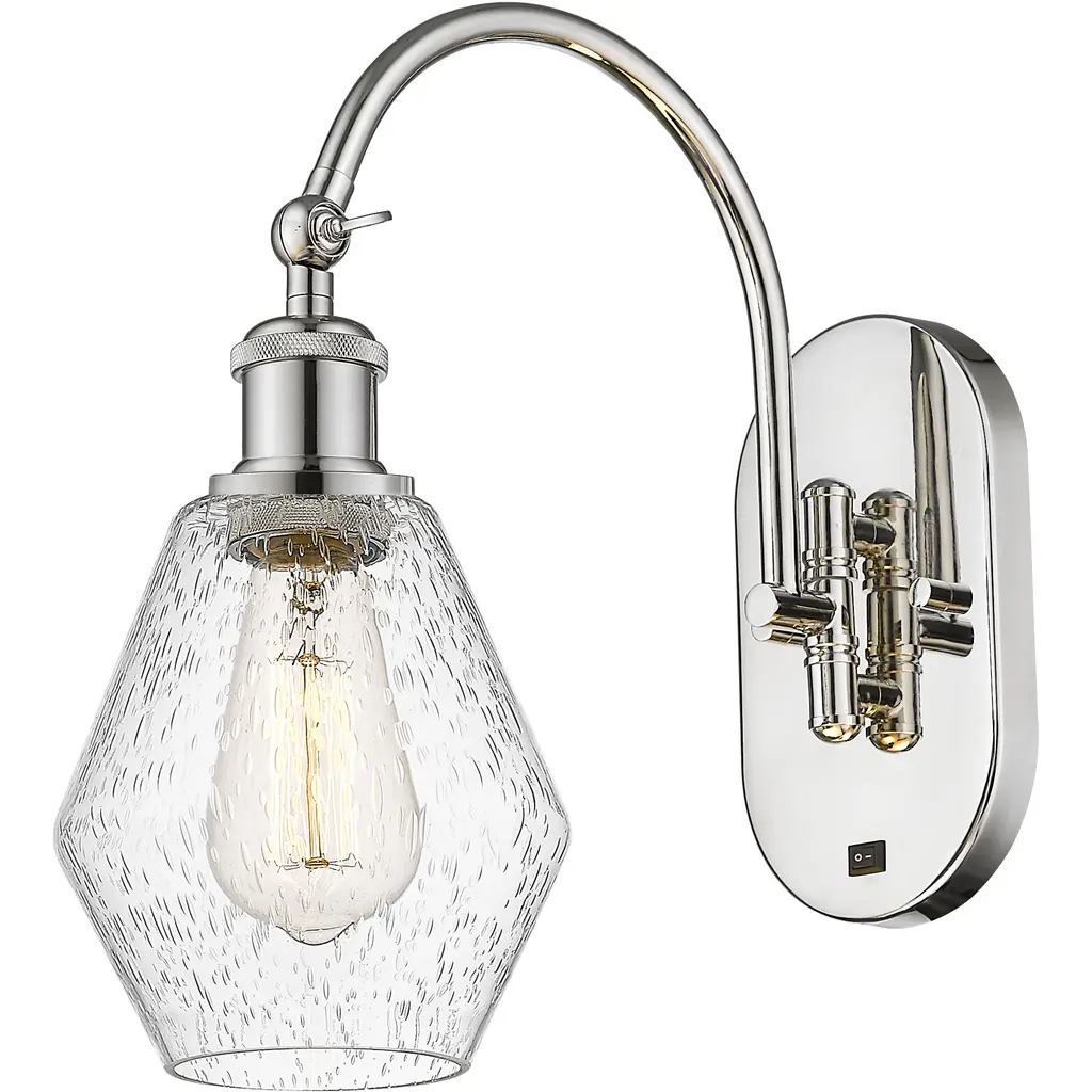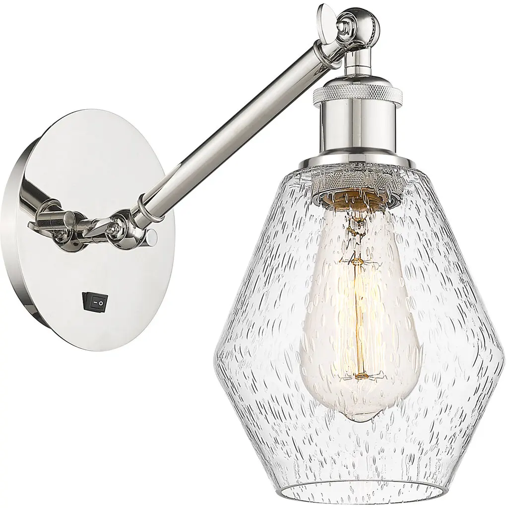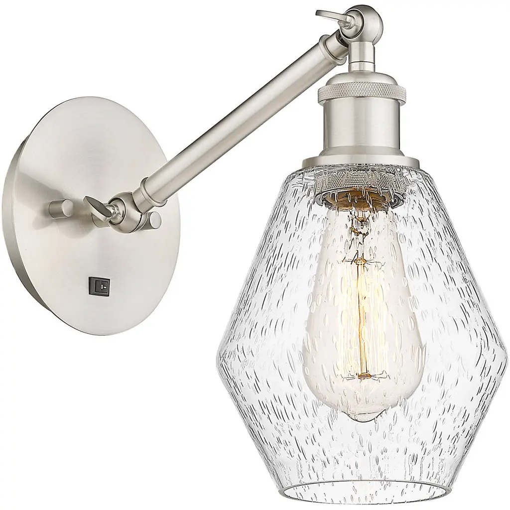 Innovations 317-1W-SN-G654-6 1-Light Sconce Brushed Satin Nickel. Collection: Ballston. Style: Industrial, Modern Contempo, Restoration-Vintage, Transitional. Metal Finish: Brushed Satin Nickel. Metal Finish (Canopy/Backplate): Brushed Satin Nickel. Material: Steel, Cast Brass, Glass. Dimension(in): 11. 375(H) x 6(W) x 12. 875(Ext). Bulb: (1)60W Medium Base,Dimmable(Not Included). Maximum Wattage Per Socket: 100. Voltage: 120. Color Temperature (Kelvin): 2200. CRI: 99. 9. Lumens: 220. Glass Shade Description: Seedy Cindyrella 6". Glass or Metal Shade Color: Seedy. Shade Material: Glass. Glass Type: Transparent. Shade Shape: Geometric. Shade Dimension(in): 6(W) x 6. 5(H). Fitter Measurement (Glass Or Metal Shade Fitter Size): Neckless with a 2. 125 inch Hole. Backplate Dimension(in): 5. 3(Dia) x 0. 75(Depth). ADA Compliant: No. California Proposition 65 Warning Required: Yes. UL and ETL Certification: Damp Location.