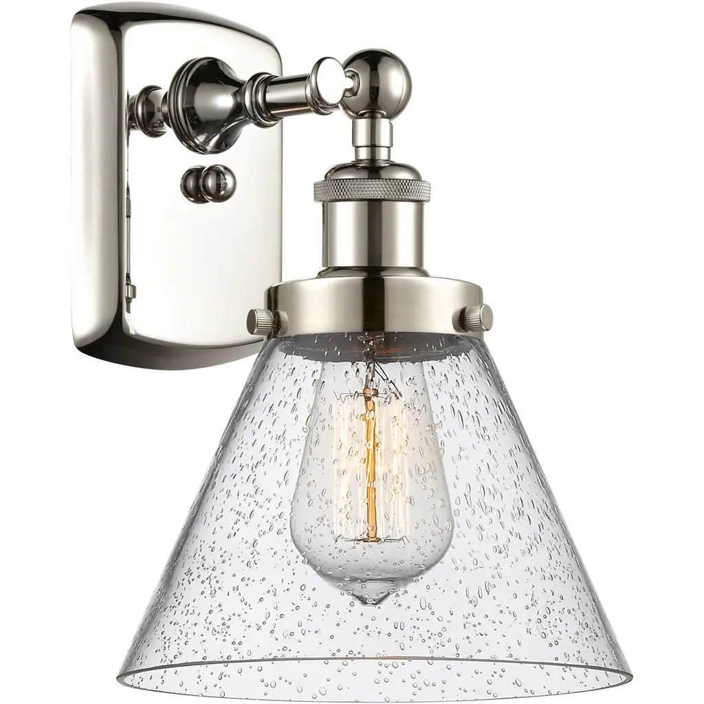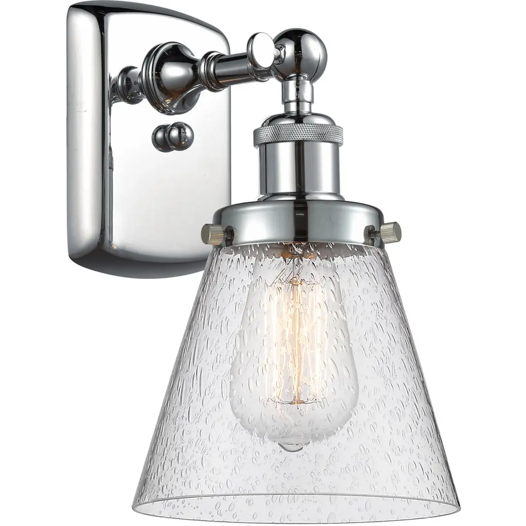 Innovations 516-1W-PC-G654-6-LED 1-Light Sconce Polished Chrome. Collection: Ballston. Style: Nautiical, Art Nouveau, Transitional, Modern. Metal Finish: Polished Chrome. Metal Finish (Canopy/Backplate): Polished Chrome. Material: Steel, Cast Brass, Glass. Dimension(in): 10. 75(H) x 6(W) x 7. 125(Ext). Bulb: (1)6W Medium Base,Dimmable(Not Included). Maximum Wattage Per Socket: 100. Voltage: 120. Color Temperature (Kelvin): 2700. CRI: 82. Lumens: 600. Glass Shade Description: Seedy Cindyrella 6". Glass or Metal Shade Color: Seedy. Shade Material: Glass. Glass Type: Transparent. Shade Shape: Geometric. Shade Dimension(in): 6(W) x 6. 5(H). Fitter Measurement (Glass Or Metal Shade Fitter Size): Neckless with a 2. 125 inch Hole. Backplate Dimension(in): 6(H) x 4. 5(W) x 0. 75(Depth). California Proposition 65 Warning Required: Yes. UL and ETL Certification: Damp Location.
