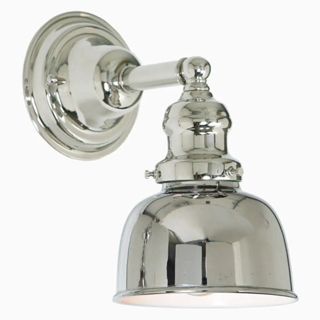 Innovations 516-1W-PN-M8 Smithfield 1 Light Sconce part of the Ballston Collection Polished Nickel. Collection: Ballston. Style: Industrial, Farmhouse, Restoration-Vintage. Metal Finish: Polished Nickel. Metal Finish(Shade): Polished Nickel. Metal Finish(Canopy/Backplate): Polished Nickel. Material: Steel, Cast Brass. Dimensions(in): 10.5(H) x 7(W) x 8(Ext). Bulb: (1)60W Medium Base Incandescent(Not Included). Maximum Wattage Per Socket: 100. Voltage: 120. Dimmable: Yes. Color Temperature (Kelvin): 2200. Color Rendering Index (CRI): 99.9. Lumens: 220. Life Expectancy (Hours): 2000. Shade Shape: Cone. Glass or Metal Shade Color: Polished Nickel. Shade Material: Metal. Metal Shade Description: Polished Nickel Smithfield. Shade Dimensions(in): 6.5(W) x 4.5(H). Fitter Measurement (Glass or Metal Shade Fitter Size): Neckless with a 2.125 inch Hole. Backplate Dimenisons(in): 6(H) x 4.5(W) x 0.75(Depth). Mounting Center to Top: 3. ADA Compliant: No. Reversible (Can be hung with bulbs facing uo or down): Yes. California Proposition 65 Warning Required: Yes. UL and ETL Certification: Damp Location.