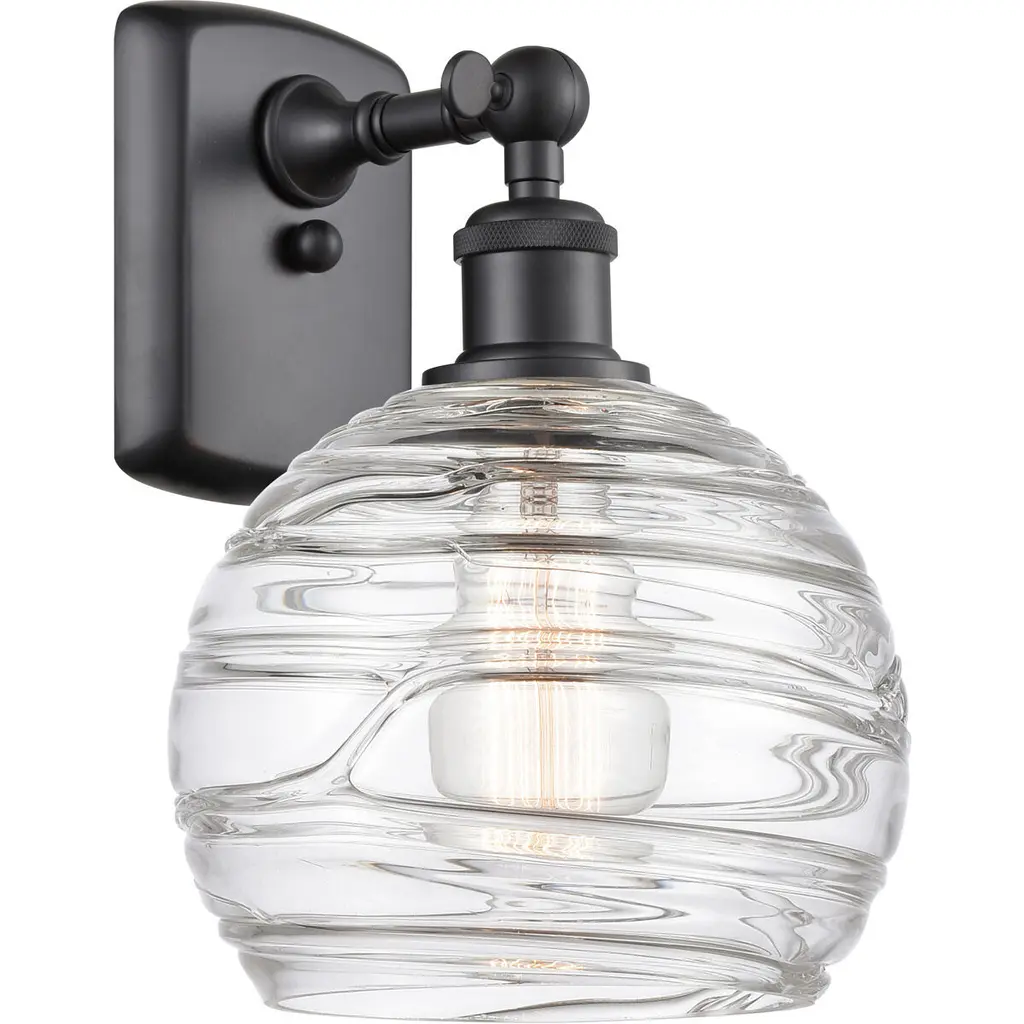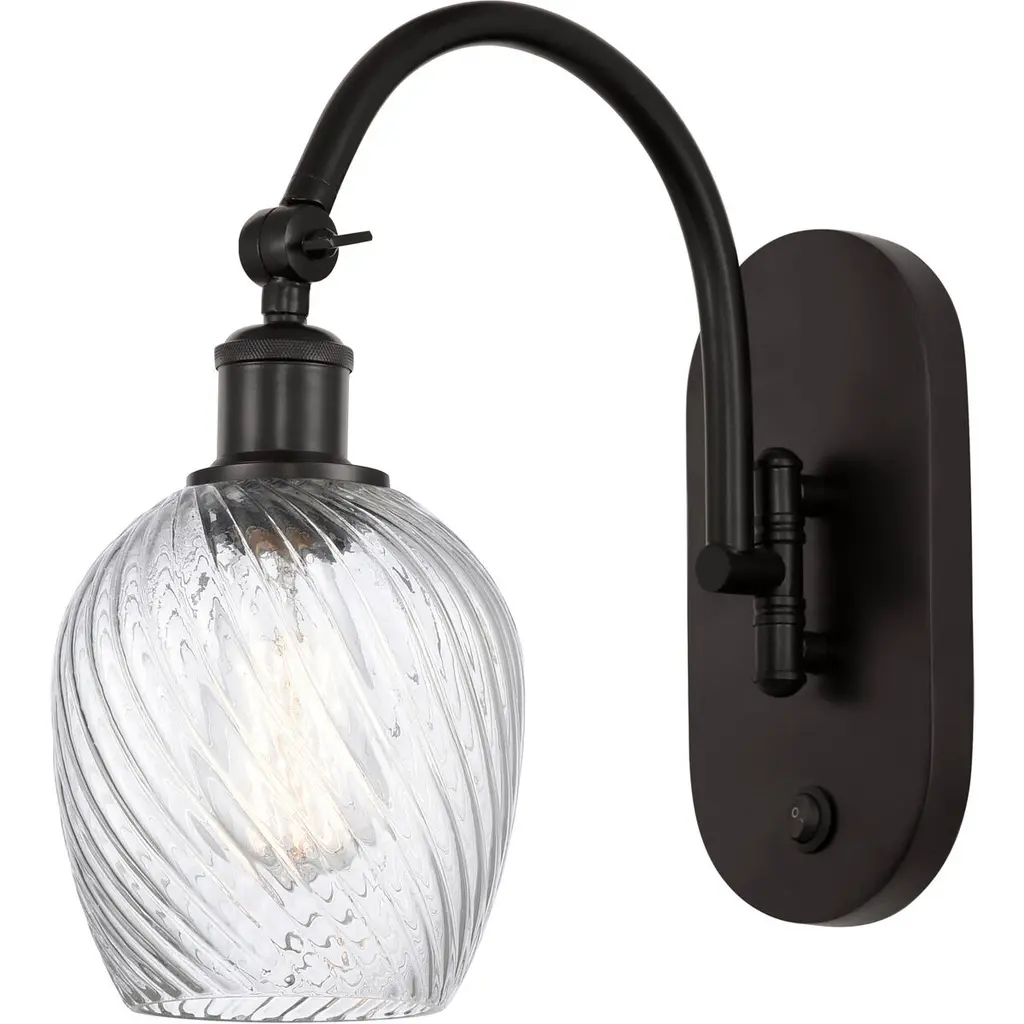 Innovations 616-1W-OB-G292 Salina 1 Light 5 inch Sconce Oil Rubbed Bronze. Collection: Edison. Style: Industrial, Modern Contempo, Restoration-Vintage, Transitional. Metal Finish: Oil Rubbed Bronze. Metal Finish(Canopy/Backplate): Oil Rubbed Bronze. Material: Steel, Cast Brass, Glass. Dimensions(in): 11.5(H) x 5(W) x 7(Ext). Bulb: (1)60W Medium Base Incandescent(Not Included). Maximum Wattage Per Socket: 100. Voltage: 120. Dimmable: Yes. Color Temperature (Kelvin): 2200. Color Rendering Index (CRI): 99.9. Lumens: 220. Life Expectancy (Hours): 2000. Glass Shade Description: Clear Spiral Fluted Salina. Glass Type: Transparent. Shade Shape: Globe/Orb. Glass or Metal Shade Color: Clear Spiral Fluted. Shade Material: Glass. Shade Dimensions(in): 5(W) x 6(H). Fitter Measurement (Glass or Metal Shade Fitter Size): Neckless with a 2.125 inch Hole. Backplate Dimenisons(in): 4.5(W) x 0.75(Depth). Mounting Center to Top: 2.5. ADA Compliant: No. Reversible (Can be hung with bulbs facing uo or down): Yes. California Proposition 65 Warning Required: Yes. UL and ETL Certification: Damp Location.
