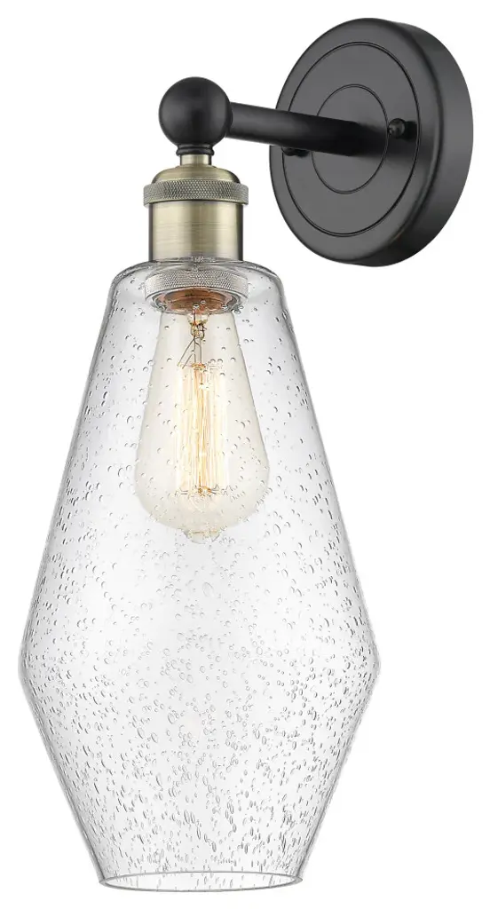 Innovations 616-1W-OB-G652-7 Cindyrella 1 Light 7 inch Sconce Oil Rubbed Bronze. Collection: Edison. Style: Nautiical, Art Nouveau, Transitional, Modern. Metal Finish: Oil Rubbed Bronze. Metal Finish(Canopy/Backplate): Oil Rubbed Bronze. Material: Steel, Cast Brass, Glass. Dimensions(in): 16.5(H) x 7(W) x 8(Ext). Bulb: (1)60W Medium Base Incandescent(Not Included). Maximum Wattage Per Socket: 100. Voltage: 120. Dimmable: Yes. Color Temperature (Kelvin): 2200. Color Rendering Index (CRI): 99.9. Lumens: 220. Life Expectancy (Hours): 2000. Glass Shade Description: Clear Cindyrella 7". Glass Type: Transparent. Shade Shape: Geometric. Glass or Metal Shade Color: Clear. Shade Material: Glass. Shade Dimensions(in): 7(W) x 11(H). Fitter Measurement (Glass or Metal Shade Fitter Size): Neckless with a 2.125 inch Hole. Backplate Dimenisons(in): 4.5(W) x 0.75(Depth). Mounting Center to Top: 2.5. ADA Compliant: No. Reversible (Can be hung with bulbs facing uo or down): Yes. California Proposition 65 Warning Required: Yes. UL and ETL Certification: Damp Location.