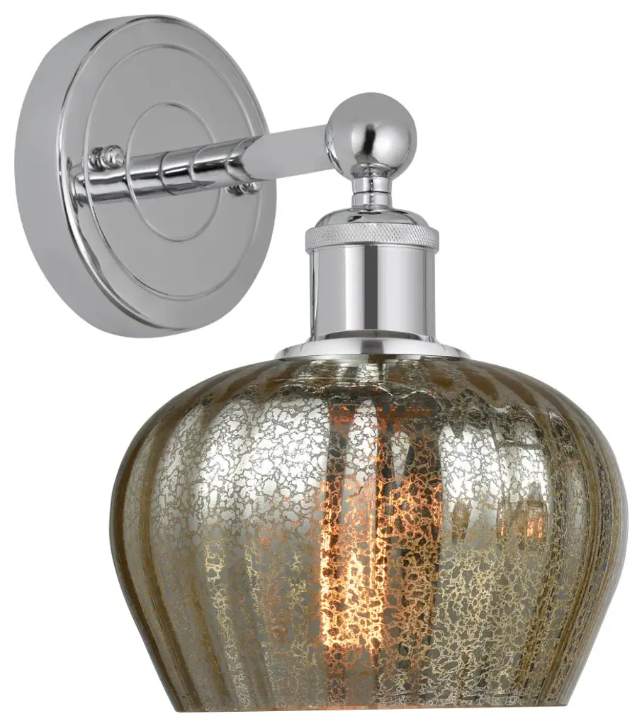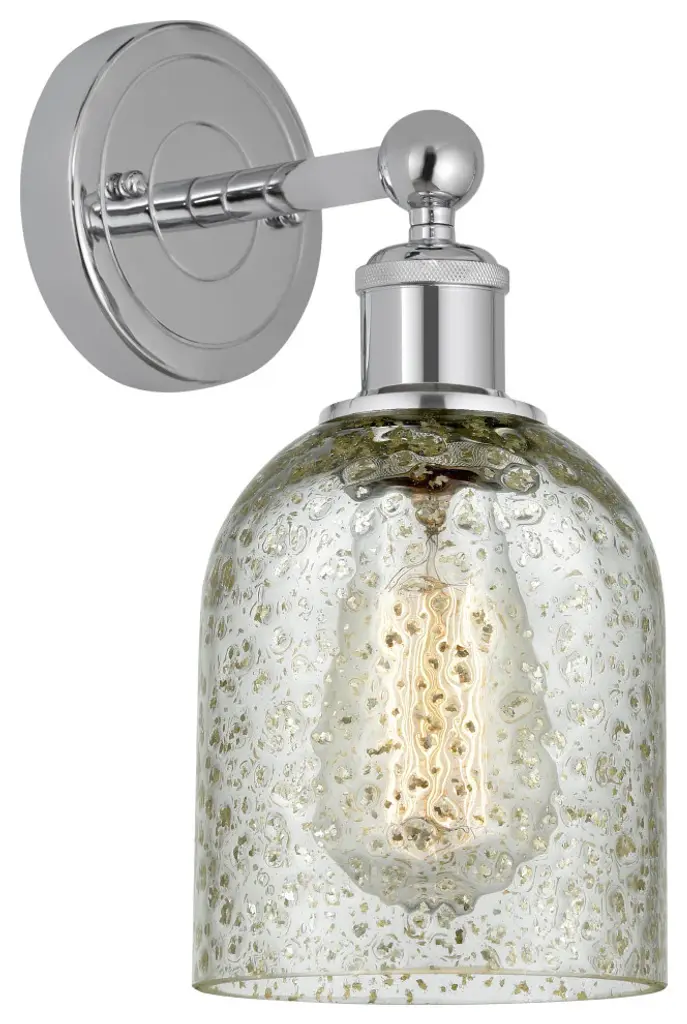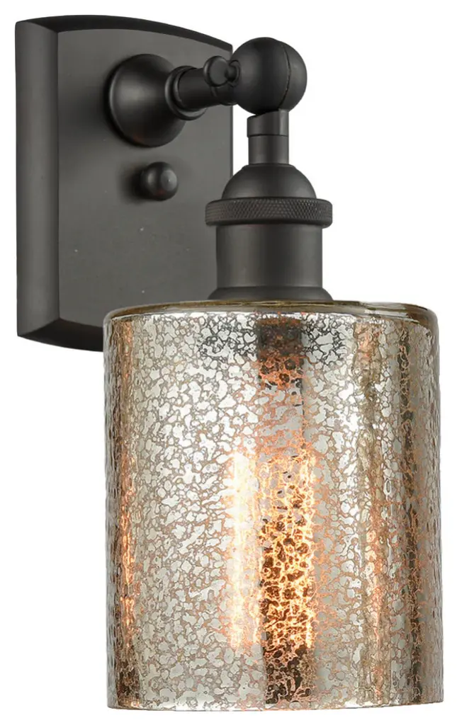 Innovations 616-1W-PC-G116 Cobbleskill 1 Light 5 inch Sconce Polished Chrome. Collection: Edison. Style: Art Nouveau, Industrial, Restoration-Vintage, Transitional. Metal Finish: Polished Chrome. Metal Finish(Canopy/Backplate): Polished Chrome. Material: Steel, Cast Brass, Glass. Dimensions(in): 11.5(H) x 5(W) x 7(Ext). Bulb: (1)60W Medium Base Incandescent(Not Included). Maximum Wattage Per Socket: 100. Voltage: 120. Dimmable: Yes. Color Temperature (Kelvin): 2200. Color Rendering Index (CRI): 99.9. Lumens: 220. Life Expectancy (Hours): 2000. Glass Shade Description: Mercury Cobbleskill. Glass Type: Mercury; Water. Shade Shape: Drum. Glass or Metal Shade Color: Mercury. Shade Material: Glass. Shade Dimensions(in): 5(W) x 6(H). Fitter Measurement (Glass or Metal Shade Fitter Size): Neckless with a 2.125 inch Hole. Backplate Dimenisons(in): 4.5(W) x 0.75(Depth). Mounting Center to Top: 2.5. ADA Compliant: No. Reversible (Can be hung with bulbs facing uo or down): Yes. California Proposition 65 Warning Required: Yes. UL and ETL Certification: Damp Location.