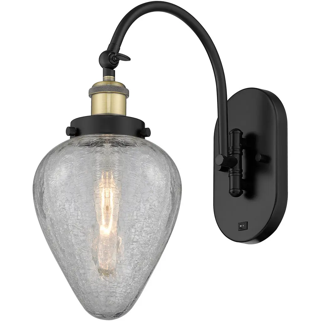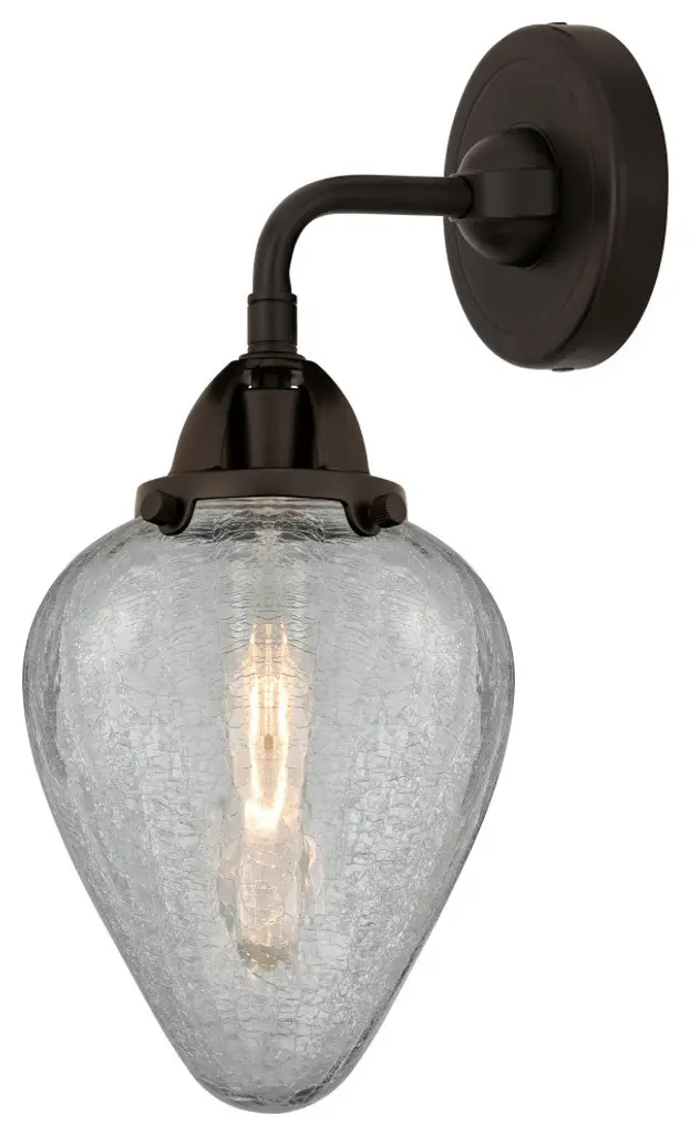 Innovations 918-1W-OB-G165-LED 1-Light Sconce Oil Rubbed Bronze. Collection: Franklin Restoration. Style: Industrial, Restoration-Vintage. Metal Finish: Oil Rubbed Bronze. Metal Finish (Canopy/Backplate): Oil Rubbed Bronze. Material: Steel, Cast Brass, Glass. Dimension(in): 15. 5(H) x 6. 5(W) x 13. 25(Ext). Bulb: (1)6W Medium Base,Dimmable(Not Included). Maximum Wattage Per Socket: 100. Voltage: 120. Color Temperature (Kelvin): 2700. CRI: 82. Lumens: 600. Glass Shade Description: Clear Crackle Geneseo. Glass or Metal Shade Color: Clear Crackled. Shade Material: Glass. Glass Type: Crackled. Shade Shape: Crackled. Shade Dimension(in): 6. 5(W) x 8. 75(H). Fitter Measurement (Glass Or Metal Shade Fitter Size): 3. 25 inch Fitter. Canopy Dimension(in): 4. 5(Dia). Backplate Dimension(in): 4. 5(Dia) x 0. 75(Depth). California Proposition 65 Warning Required: Yes. UL and ETL Certification: Damp Location.