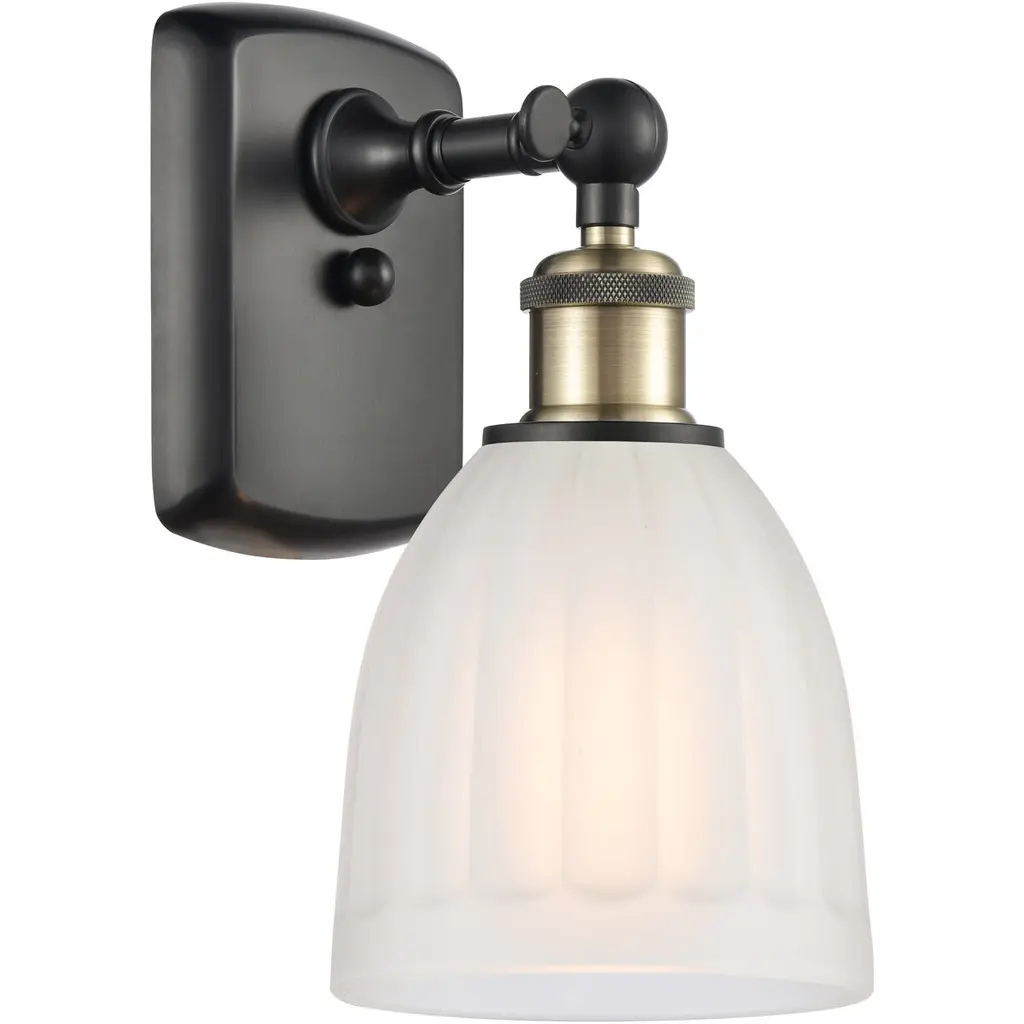 INNOVATIONS 616-1W-BB-G191 Bellmont 1 6.5 inch Sconce Brushed Brass. Style: Art Nouveau, Industrial, Restoration-Vintage, Transitional . Collection Name: Edison. Metal Finish(Body): Brushed Brass. Metal Finish(Canopy/Backplate): Brushed Brass. Material: Steel, Cast Brass, Glass. Dimension(in): 11.5(H) x 6.125(W) x 7.5625(Ext). Bulb: (1)60W Medium Base Incandescent(Not Included). Voltage: 120. Dimmable: Yes. Color Temperature (Kelvin): 2200. Color Rendering Index (CRI): 99.9. Lumens: 220. Life Expectancy (Hours): 2000. Glass Shade Description: Matte White Bellmont. Glass Type: Frosted. Shade Shape: Bell/Urn. Glass or Metal Shade Color: Matte White. Shade Material: Glass. Shade Dimension(in): 6.125(W) x 6.25(H). Fitter Measurement (Glass Or Metal Shade Fitter Size): 3.25 inch Fitter. Backplate Dimension(in): 4.5(W) x 0.75(Depth). ADA Compliant: No. California Proposition 65 Warning Required: Yes. UL/ETL Certification Type: Damp Location.