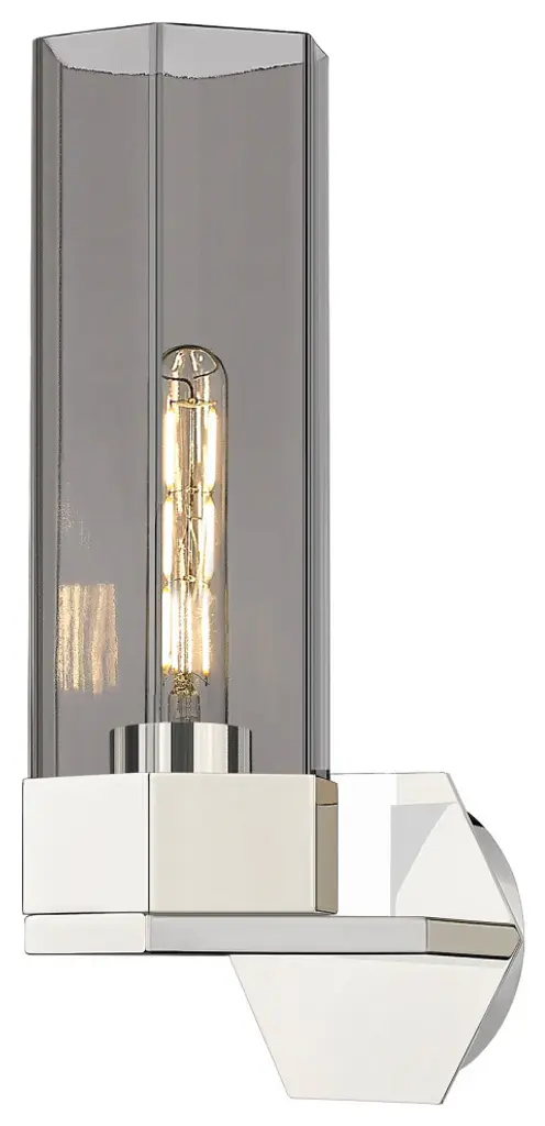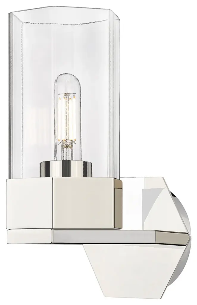 INNOVATIONS 427-1W-PN-G427-14CL Claverack 1 5.875 inch Sconce Polished Nickel. Style: Art Deco, Art Nouveau. Collection Name: Downtown Urban. Metal Finish(Body): Polished Nickel. Material: Steel, Cast Brass, Glass. Dimension(in): 16.625(H) x 5.875(W) x 7.5(Ext). Bulb: (1)5W LED(Included). Voltage: 120. Dimmable: Yes. Color Temperature (Kelvin): 2700. Color Rendering Index (CRI): 90. Lumens: 500. Life Expectancy (Hours): 15000. Glass Shade Description: Clear Claverack. Glass Type: Clear. Shade Shape: Geometric. Glass or Metal Shade Color: Clear. Shade Material: Glass. Shade Dimension(in): 4.75(W) x 13.25(H). ADA Compliant: No. California Proposition 65 Warning Required: Yes. UL/ETL Certification Type: Damp Location.