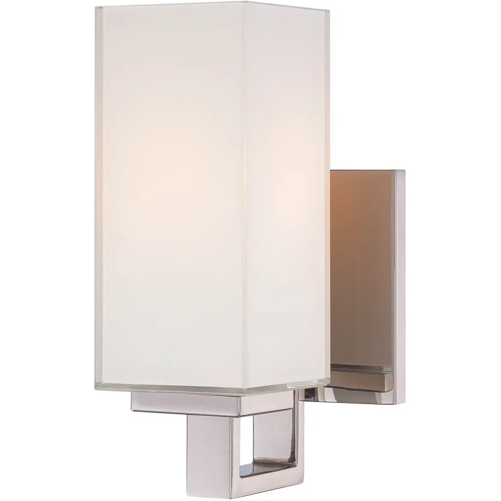 INNOVATIONS 427-1W-PN-G427-14WH Claverack 1 5.875 inch Sconce Polished Nickel. Style: Art Deco, Art Nouveau. Collection Name: Downtown Urban. Metal Finish(Body): Polished Nickel. Material: Steel, Cast Brass, Glass. Dimension(in): 16.625(H) x 5.875(W) x 7.5(Ext). Bulb: (1)5W LED(Included). Voltage: 120. Dimmable: Yes. Color Temperature (Kelvin): 2700. Color Rendering Index (CRI): 90. Lumens: 500. Life Expectancy (Hours): 15000. Glass Shade Description: White Claverack. Glass Type: Frosted. Shade Shape: Geometric. Glass or Metal Shade Color: White. Shade Material: Glass. Shade Dimension(in): 4.75(W) x 13.25(H). ADA Compliant: No. California Proposition 65 Warning Required: Yes. UL/ETL Certification Type: Damp Location.