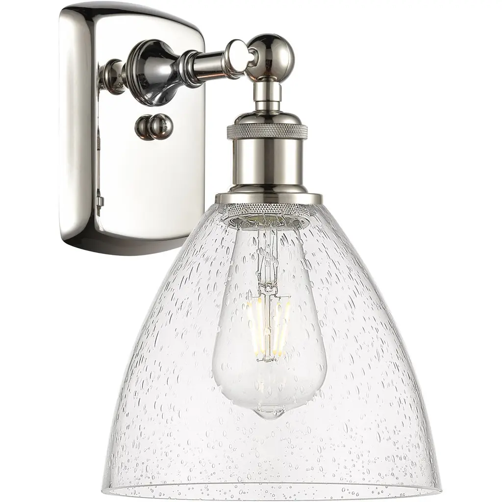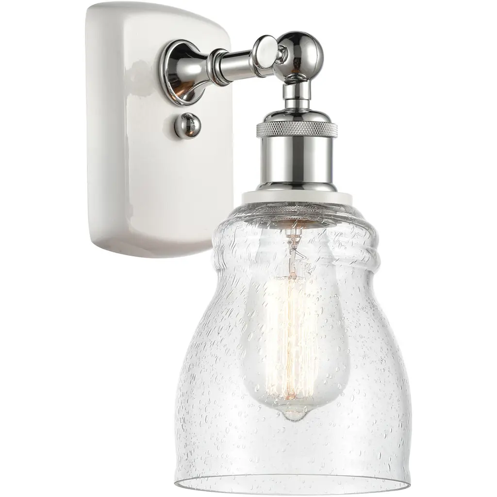 INNOVATIONS 516-1W-WPC-G804 Clymer 1 3.875 inch Sconce White and Polished Chrome. Style: Art Nouveau, Transitional, Modern . Collection Name: Ballston. Metal Finish(Body): White and Polished Chrome. Metal Finish(Canopy/Backplate): White. Material: Steel, Cast Brass, Glass. Dimension(in): 9.875(H) x 3.875(W) x 6.0625(Ext). Bulb: (1)60W Medium Base Incandescent(Not Included). Voltage: 120. Dimmable: Yes. Color Temperature (Kelvin): 2200. Color Rendering Index (CRI): 99.9. Lumens: 220. Life Expectancy (Hours): 2000. Glass Shade Description: Seedy Clymer. Glass Type: Transparent. Shade Shape: Cylinder. Glass or Metal Shade Color: Seedy. Shade Material: Glass. Shade Dimension(in): 3.875(W) x 5.875(H). Fitter Measurement (Glass Or Metal Shade Fitter Size): Neckless with a 1.625 inch opening. Backplate Dimension(in): 6(H) x 4.5(W) x 0.75(Depth). ADA Compliant: No. California Proposition 65 Warning Required: Yes. UL/ETL Certification Type: Damp Location.