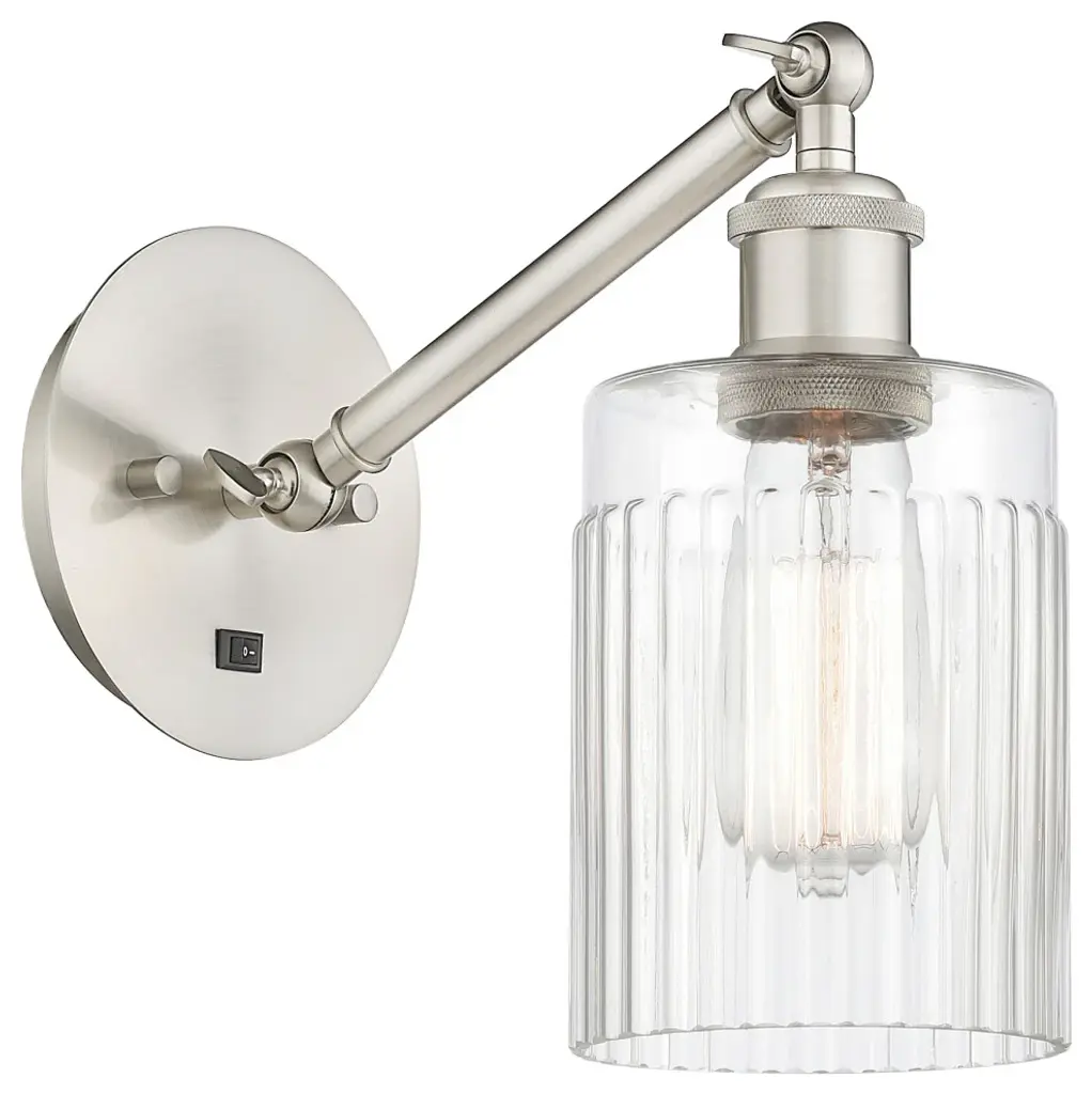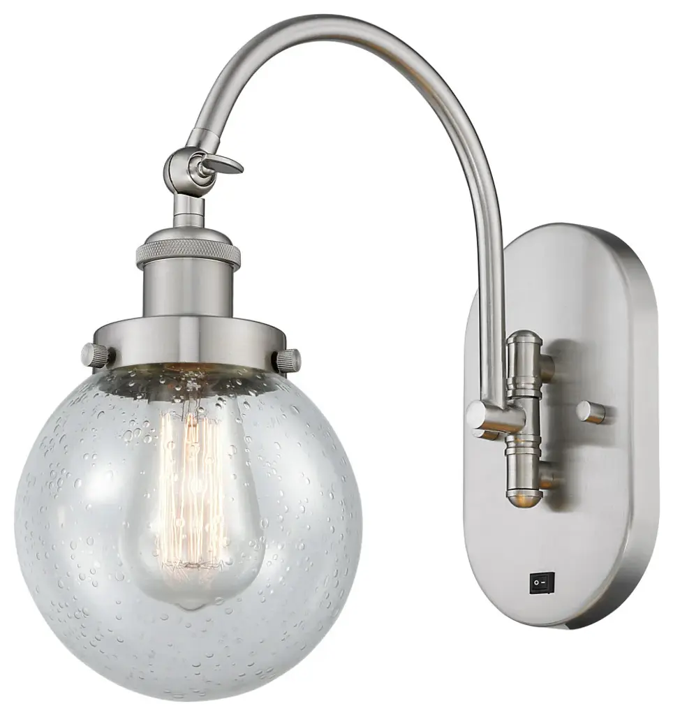 INNOVATIONS 317-1W-SN-G804 Clymer 1 5.3 inch Sconce Brushed Satin Nickel. Style: Art Nouveau, Transitional, Modern . Collection Name: Ballston. Metal Finish(Body): Brushed Satin Nickel. Metal Finish(Canopy/Backplate): Brushed Satin Nickel. Material: Steel, Cast Brass, Glass. Dimension(in): 8.875(H) x 3.875(W) x 10.9375(Ext). Bulb: (1)60W Medium Base Incandescent(Not Included). Voltage: 120. Dimmable: No. Switch Type Included: On/Off Rocker Switch. Color Temperature (Kelvin): 2200. Color Rendering Index (CRI): 99.9. Lumens: 220. Life Expectancy (Hours): 2000. Glass Shade Description: Seedy Clymer. Glass Type: Transparent. Shade Shape: Cylinder. Glass or Metal Shade Color: Seedy. Shade Material: Glass. Shade Dimension(in): 3.875(W) x 5.875(H). Fitter Measurement (Glass Or Metal Shade Fitter Size): Neckless with a 1.625 inch opening. Backplate Dimension(in): 5.3(Dia) x 0.75(Depth). ADA Compliant: No. California Proposition 65 Warning Required: Yes. UL/ETL Certification Type: Damp Location.