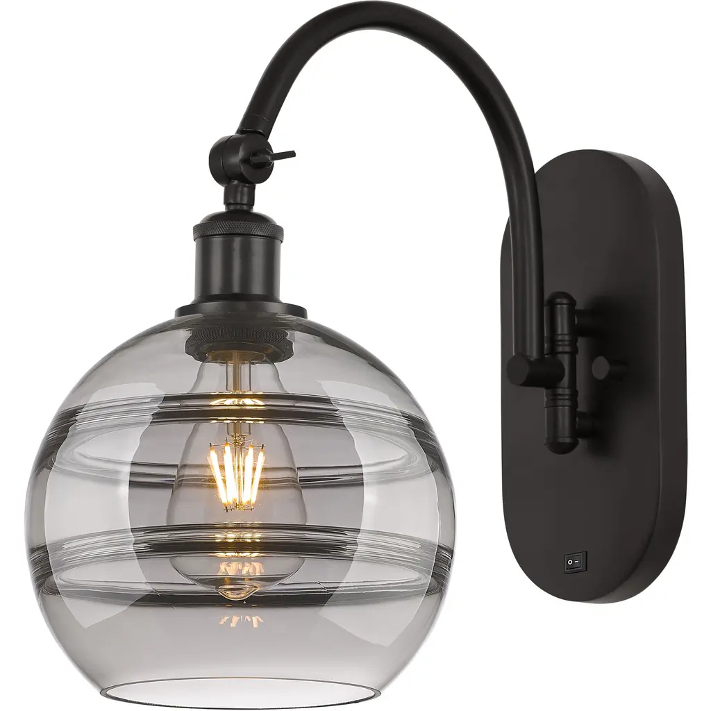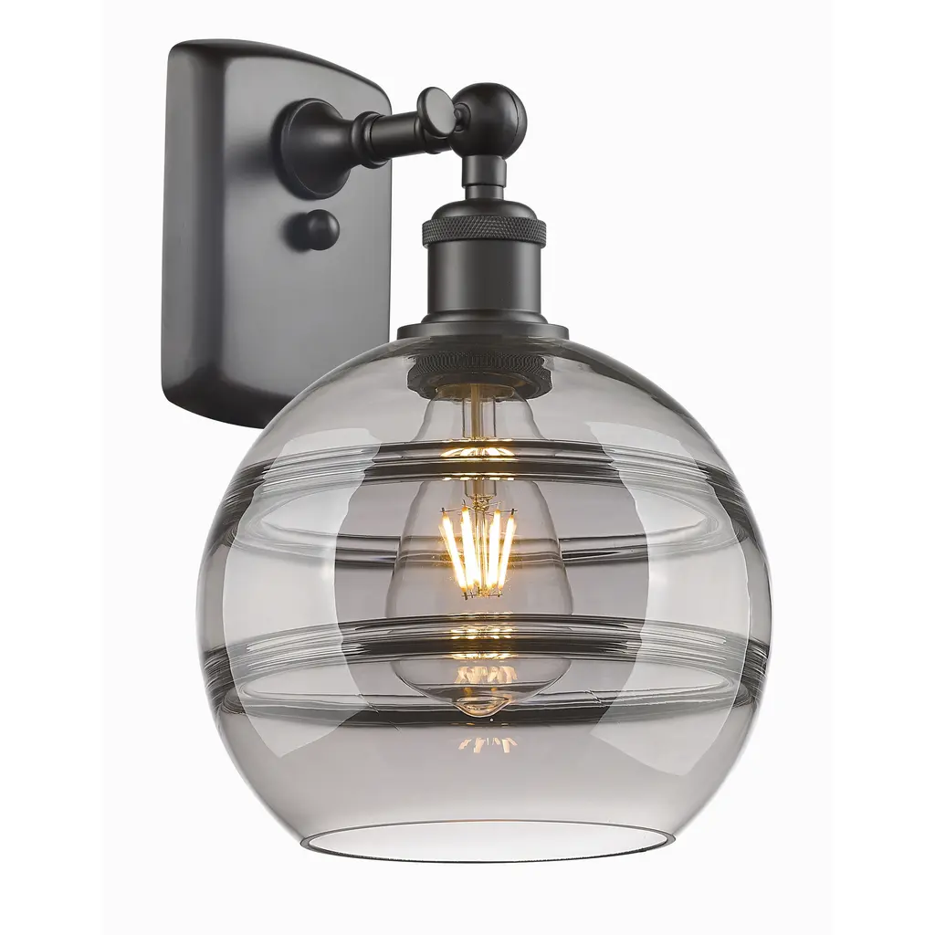 INNOVATIONS 516-1W-BK-G1213-6SM Deco Swirl 1 Light 6 inch Sconce Matte Black. Style: Industrial, Modern Contempo, Restoration-Vintage, Transitional . Collection Name: Ballston. Metal Finish(Body): Matte Black. Metal Finish(Canopy/Backplate): Matte Black. Material: Steel, Cast Brass, Glass. Dimension(in): 9.125(H) x 5.875(W) x 7.0625(Ext). Bulb: (1)60W Medium Base Incandescent(Not Included). Voltage: 120. Dimmable: Yes. Color Temperature (Kelvin): 2200. Color Rendering Index (CRI): 99.9. Lumens: 220. Life Expectancy (Hours): 2000. Glass Shade Description: Light Smoke Athens Deco Swirl 8". Glass Type: Smoked. Shade Shape: Globe/Orb. Glass or Metal Shade Color: Light Smoke Deco Swirl. Shade Material: Glass. Shade Dimension(in): 5.875(W) x 5.125(H). Fitter Measurement (Glass Or Metal Shade Fitter Size): Neckless with a 1.675 inch opening. Backplate Dimension(in): 6(H) x 4.5(W) x 0.75(Depth). ADA Compliant: No. California Proposition 65 Warning Required: Yes. UL/ETL Certification Type: Damp Location.