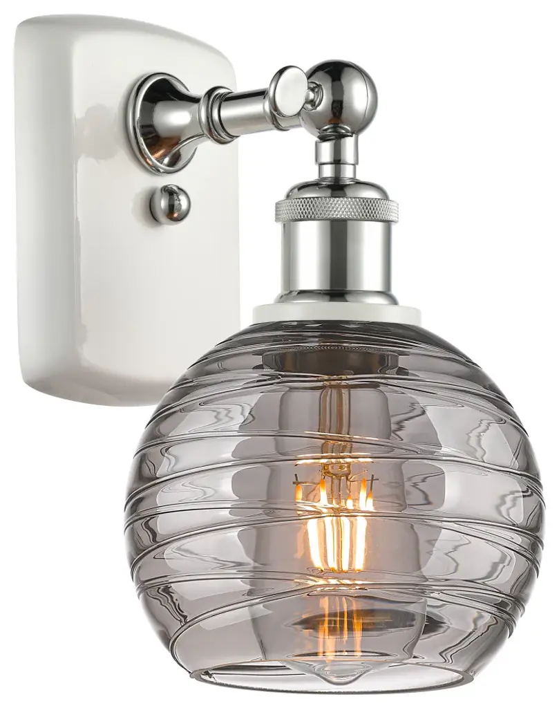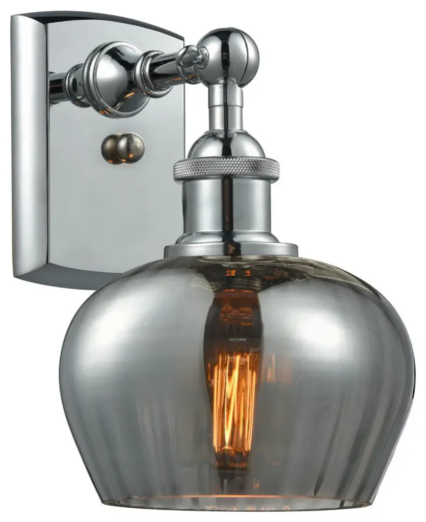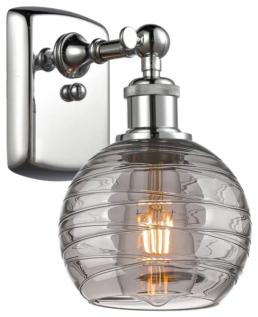 INNOVATIONS 516-1W-PN-G1213-6SM Deco Swirl 1 Light 6 inch Sconce Polished Nickel. Style: Industrial, Modern Contempo, Restoration-Vintage, Transitional . Collection Name: Ballston. Metal Finish(Body): Polished Nickel. Metal Finish(Canopy/Backplate): Polished Nickel. Material: Steel, Cast Brass, Glass. Dimension(in): 9.125(H) x 5.875(W) x 7.0625(Ext). Bulb: (1)60W Medium Base Incandescent(Not Included). Voltage: 120. Dimmable: Yes. Color Temperature (Kelvin): 2200. Color Rendering Index (CRI): 99.9. Lumens: 220. Life Expectancy (Hours): 2000. Glass Shade Description: Light Smoke Athens Deco Swirl 8". Glass Type: Smoked. Shade Shape: Globe/Orb. Glass or Metal Shade Color: Light Smoke Deco Swirl. Shade Material: Glass. Shade Dimension(in): 5.875(W) x 5.125(H). Fitter Measurement (Glass Or Metal Shade Fitter Size): Neckless with a 1.675 inch opening. Backplate Dimension(in): 6(H) x 4.5(W) x 0.75(Depth). ADA Compliant: No. California Proposition 65 Warning Required: Yes. UL/ETL Certification Type: Damp Location.