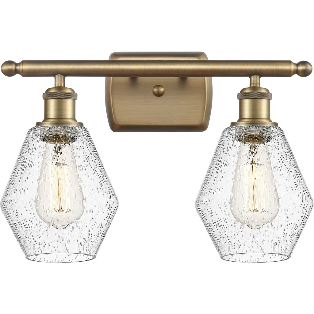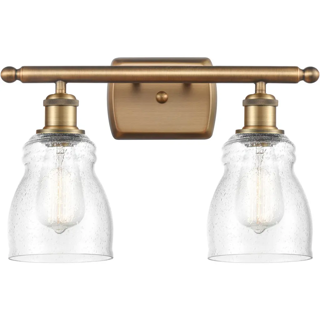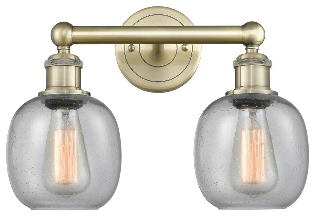 INNOVATIONS 616-2W-BB-G92 Fenton 2 15.5 inch Bath Vanity Light Brushed Brass. Style: Art Nouveau, Industrial, Restoration-Vintage, Transitional . Collection Name: Edison. Metal Finish(Body): Brushed Brass. Metal Finish(Canopy/Backplate): Brushed Brass. Material: Steel, Cast Brass, Glass. Dimension(in): 9.75(H) x 15.5(W) x 7.75(Ext). Bulb: (2)60W Medium Base Incandescent(Not Included). Voltage: 120. Dimmable: Yes. Color Temperature (Kelvin): 2200. Color Rendering Index (CRI): 99.9. Lumens: 220. Life Expectancy (Hours): 2000. Glass Shade Description: Clear Fenton. Glass Type: Transparent; Ribbed. Shade Shape: Bowl. Glass or Metal Shade Color: Clear. Shade Material: Glass. Shade Dimension(in): 6.5(W) x 4.5(H). Fitter Measurement (Glass Or Metal Shade Fitter Size): Neckless with a 1.75 inch opening. Backplate Dimension(in): 4.5(W) x 0.75(Depth). ADA Compliant: No. California Proposition 65 Warning Required: Yes. UL/ETL Certification Type: Damp Location.