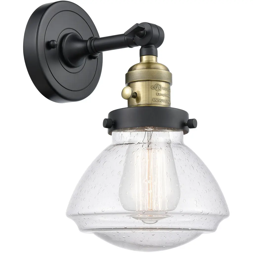 INNOVATIONS LIGHTING 203-AC-G204-6-LED Beacon 1 Light Sconce part of the Franklin Restoration Collection. The Beacon 1 Light Sconce is part of the Franklin Restoration Collection.Solid Brass 180 Degree Adjustable Swivel with internal teeth that lock in at 5 degree intervals With Engraved Cast Cup. Collection: Franklin Restoration. Material: Steel, Cast Brass, Glass. Metal Finish(Body): Antique Copper. Metal Finish(Canopy/Backplate): Antique Copper. Dimension(in): 6(W) x 12(H) x 8(Ext). Bulb: (1)3.5 Watt LED Vintage Medium Base Bulb Included,Dimmable. Color Temperature: 2700. Color Rendering Index(CRI): 82. Lumens): 350. Voltage: 120. Glass: Seedy Beacon/Seeded. Shade Shape: Globe. Shade Material: Glass. Shade Size(in): 6 X 5.75. Shade Fitter Measurement: 3.25 inch Fitter. Canopy Dimension(in): 4.5. Backplate Dimension(in): 4.5x0.75. Solid Brass 180 Degree Adjustable Swivel with internal teeth that lock in at 5 degree intervals With Engraved Cast Cup. Fixture can be hung with bulbs facing up or down as a Wall Mount or Facing Down as a Ceiling Mount. UL/CUL Damp Rated. Warranty: 2 Year Finish, Lifetime Electrical.