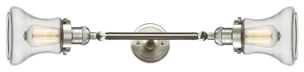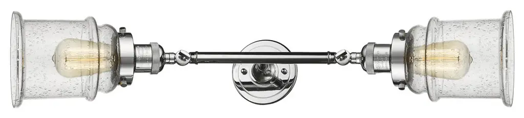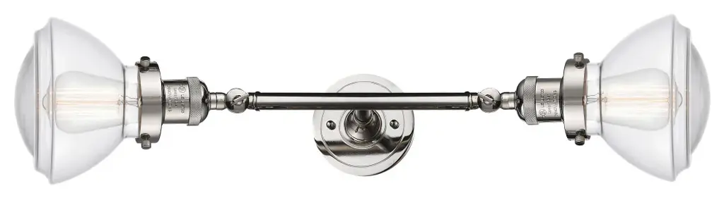 INNOVATIONS LIGHTING 208L-PC-G532 Small Oxford 2 Light Bath Vanity Light part of the Franklin Restoration Collection. The Small Oxford 2 Light Bath Vanity Light is part of the Franklin Restoration Collection.Solid Brass 180 Degree Adjustable Swivels with internal teeth that lock in at 5 degree intervals. Collection: Franklin Restoration. Material: Steel, Cast Brass, Glass. Metal Finish(Body): Polished Chrome. Metal Finish(Canopy/Backplate): Polished Chrome. Dimension(in): 7.5(W) x 22.25(H) x 9(Ext). Bulb: (2)100 Medium Base Vintage Bulb recommended(Not Included). Voltage: 120. Glass: Clear Small Oxford/Transparent. Shade Shape: Schoolhouse. Shade Material: Glass. Shade Size(in): 7.5 X 5.75. Shade Fitter Measurement: 3.25 inch Fitter. Canopy Dimension(in): 4.5. Backplate Dimension(in): 4.5x0.75. Solid Brass 180 Degree Adjustable Swivels with internal teeth that lock in at 5 degree intervals. Fixtures can be hung Horizontally or Vertically. Fixture can be hung with bulbs facing up or down as a Wall Mount. UL/CUL Damp Rated. Warranty: 2 Year Finish, Lifetime Electrical.