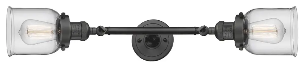 INNOVATIONS LIGHTING 208L-BAB-G54-LED Small Bell 2 Light Bath Vanity Light part of the Franklin Restoration Collection. The Small Bell 2 Light Bath Vanity Light is part of the Franklin Restoration Collection.Solid Brass 180 Degree Adjustable Swivels with internal teeth that lock in at 5 degree intervals. Collection: Franklin Restoration. Material: Steel, Cast Brass, Glass. Metal Finish(Body): Black Antique Brass. Metal Finish(Canopy/Backplate): Black Antique Brass. Dimension(in): 5(W) x 23(H) x 8(Ext). Bulb: (2)3.5 Watt LED Vintage Medium Base Bulb Included,Dimmable. Color Temperature: 2700. Color Rendering Index(CRI): 82. Lumens): 350. Voltage: 120. Glass: Seedy Small Bell/Seeded. Shade Shape: Bell. Shade Material: Glass. Shade Size(in): 5 X 5.75. Shade Fitter Measurement: 3.25 inch Fitter. Canopy Dimension(in): 4.5. Backplate Dimension(in): 4.5x0.75. Solid Brass 180 Degree Adjustable Swivels with internal teeth that lock in at 5 degree intervals. Fixtures can be hung Horizontally or Vertically. Fixture can be hung with bulbs facing up or down as a Wall Mount. UL/CUL Damp Rated. Warranty: 2 Year Finish, Lifetime Electrical.